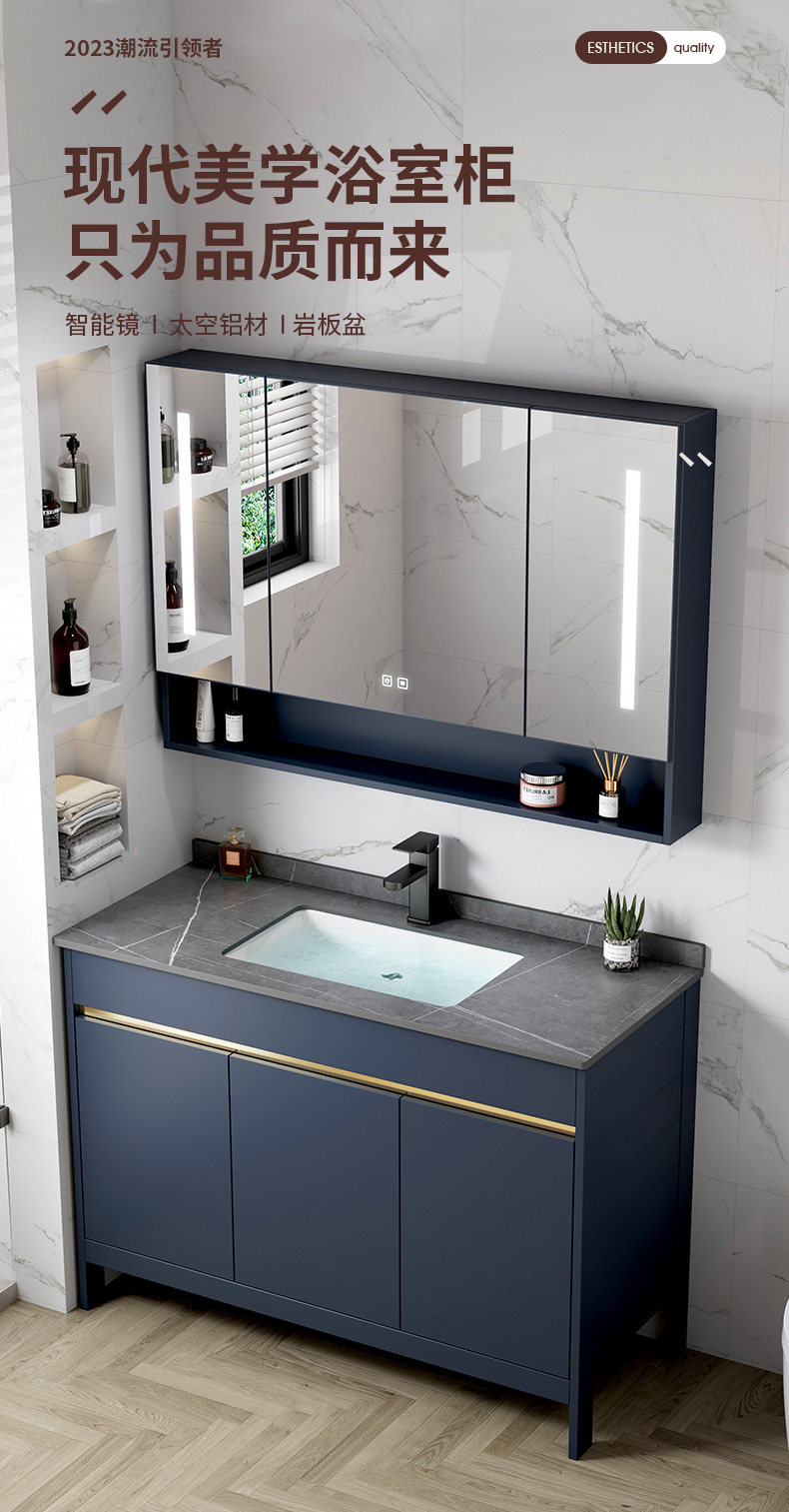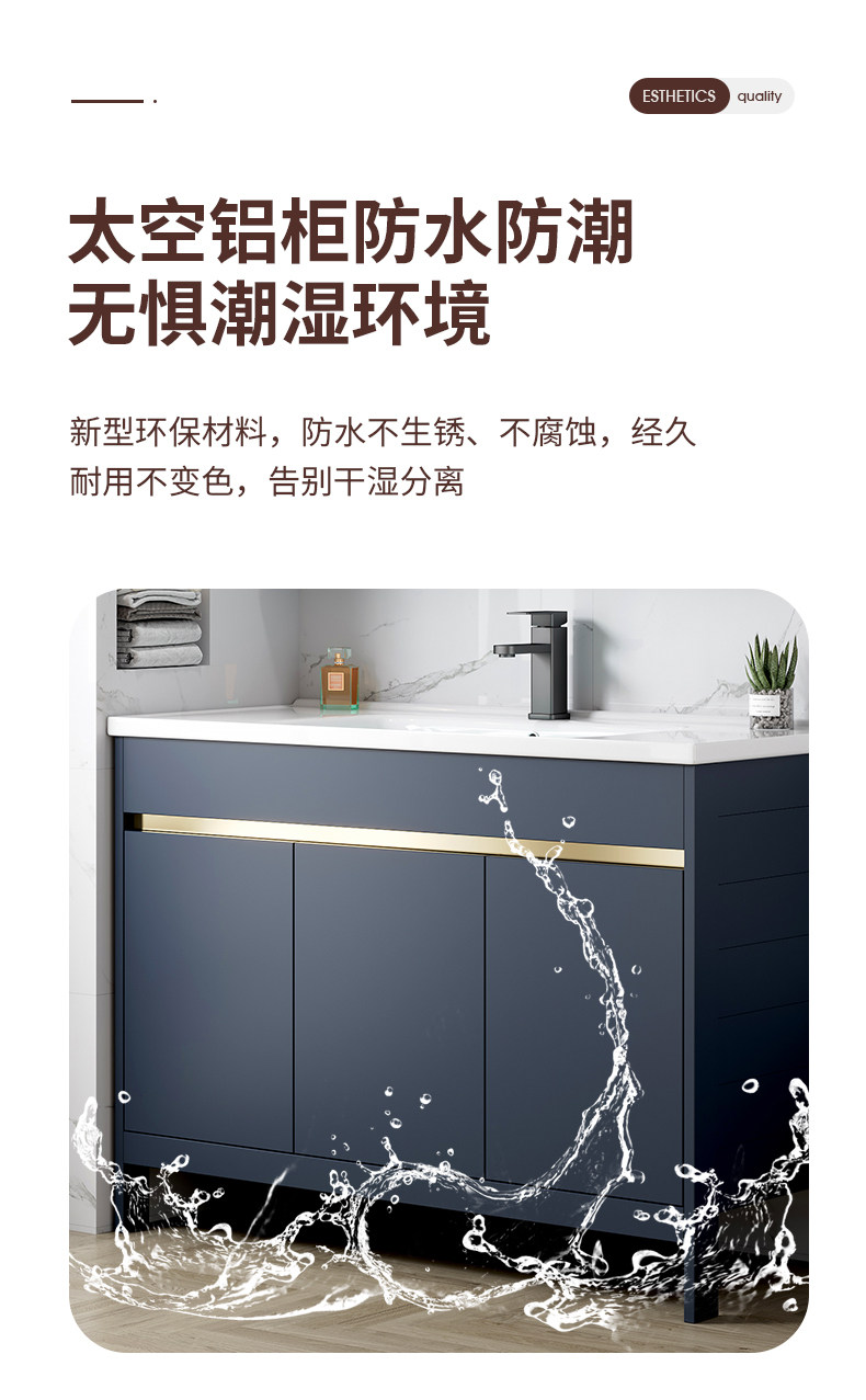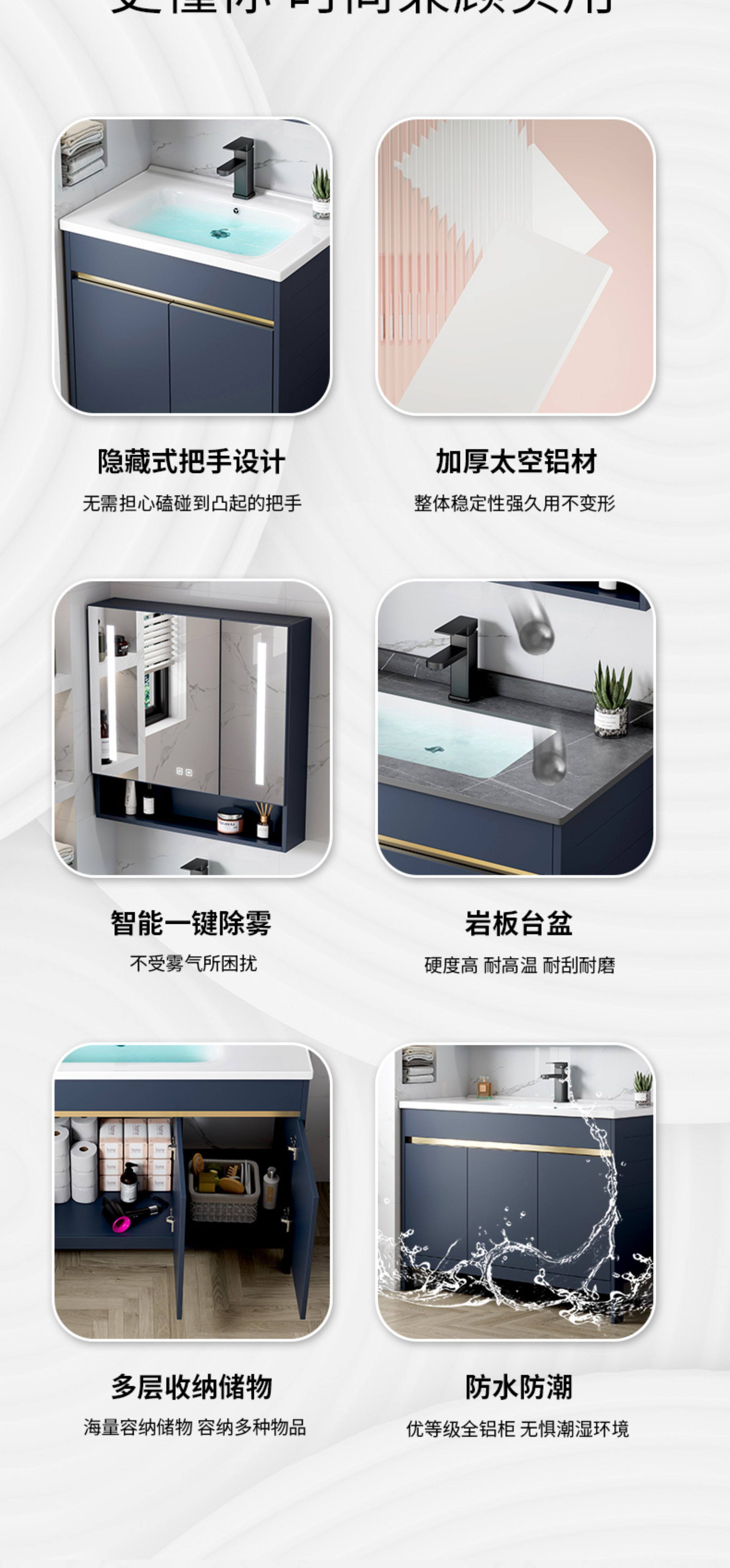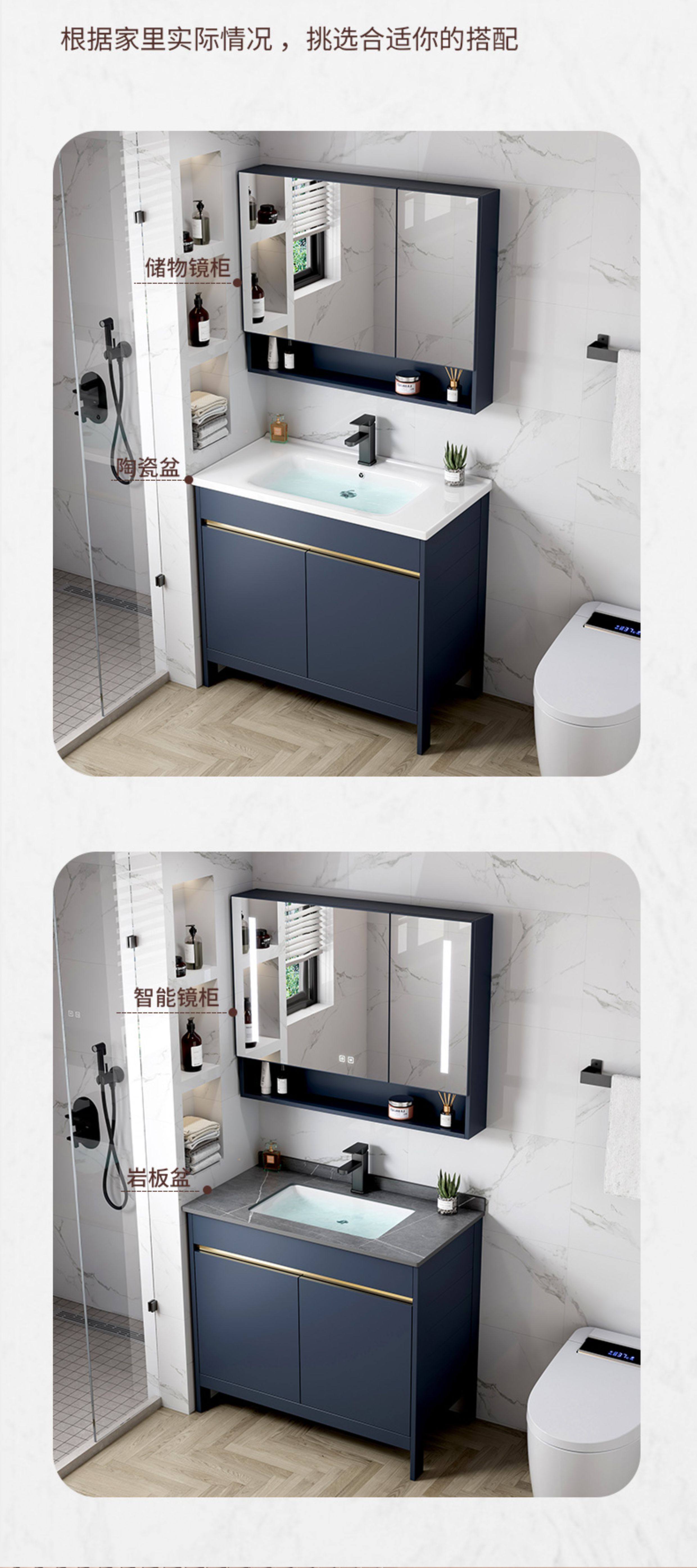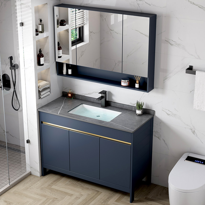 Легкий роскошный пространство алюминиевый шкаф для ванной комнаты Комбинированный пол -пол -ползуну для ванной комнаты базис туалетной базисной бассейн для мытья бассейн