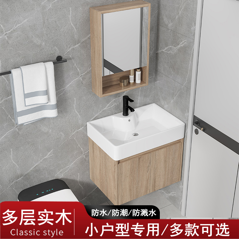 Ультра -роскошная твердая древесина небольшая квартира в ванной комнате узкий длинная керамическая ванная комната интегрированная ручная бассейн комбинированное мыть