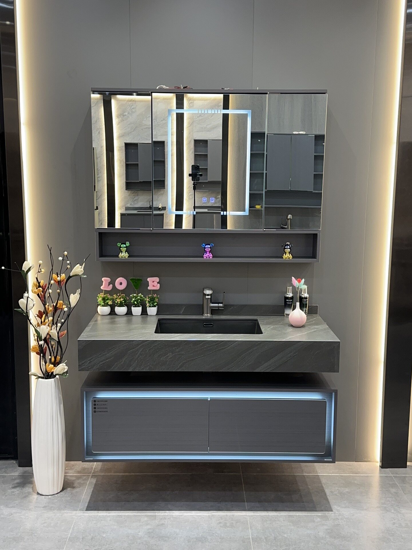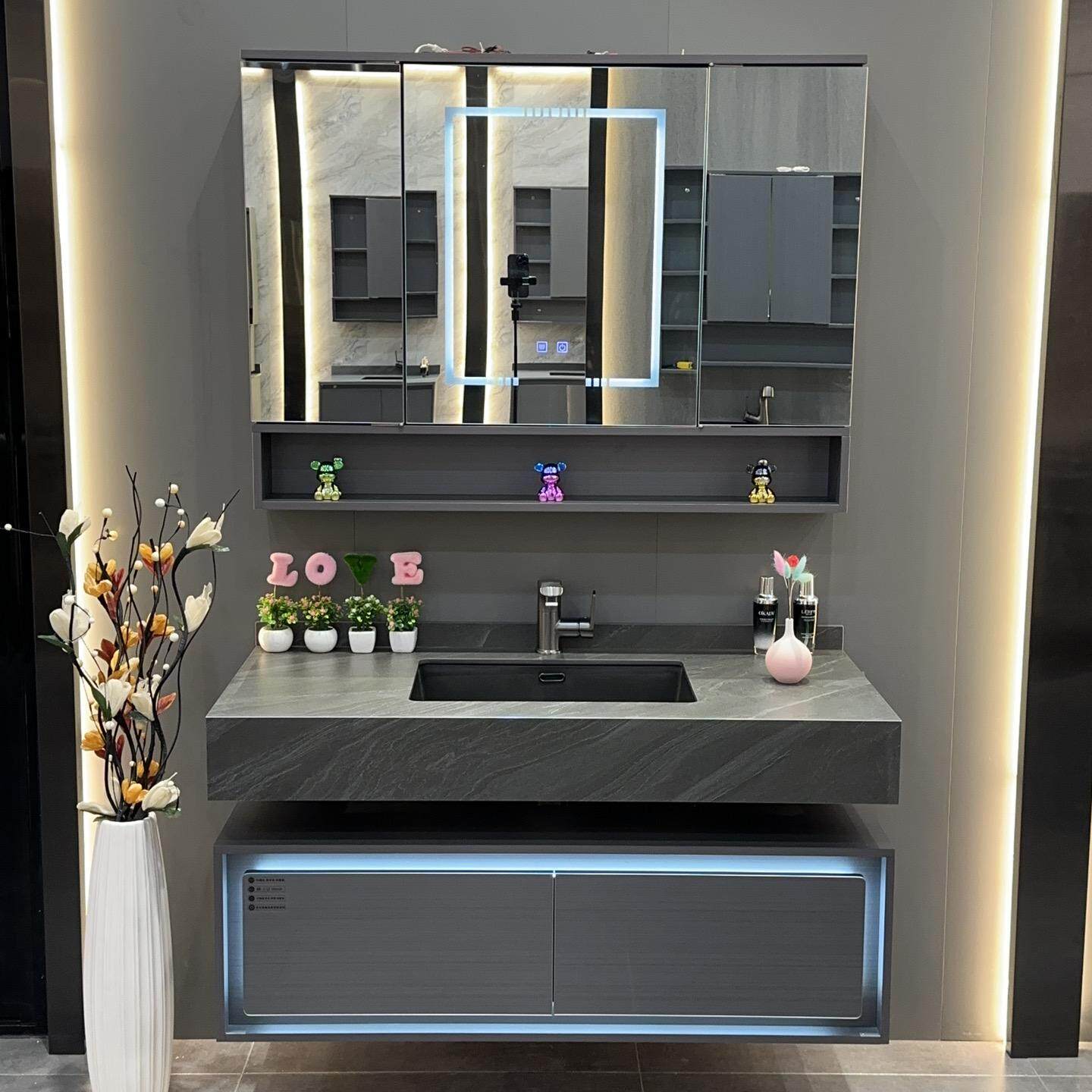 - 100 см-каменная плита+керамическая раковина-умный зеркальный шкаф