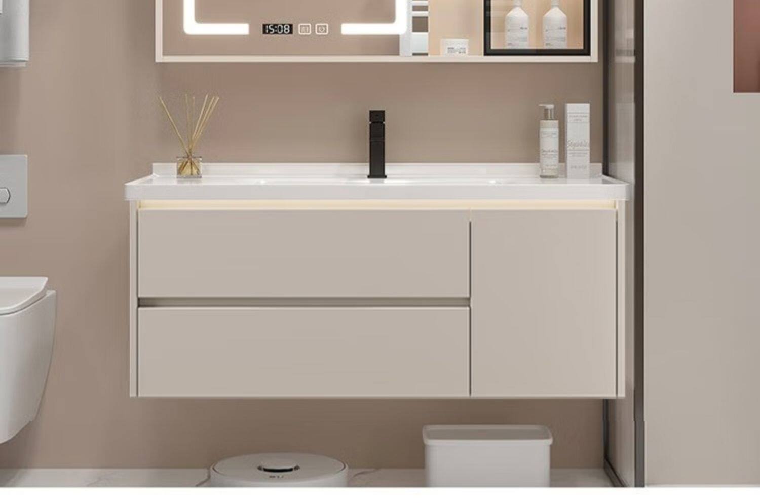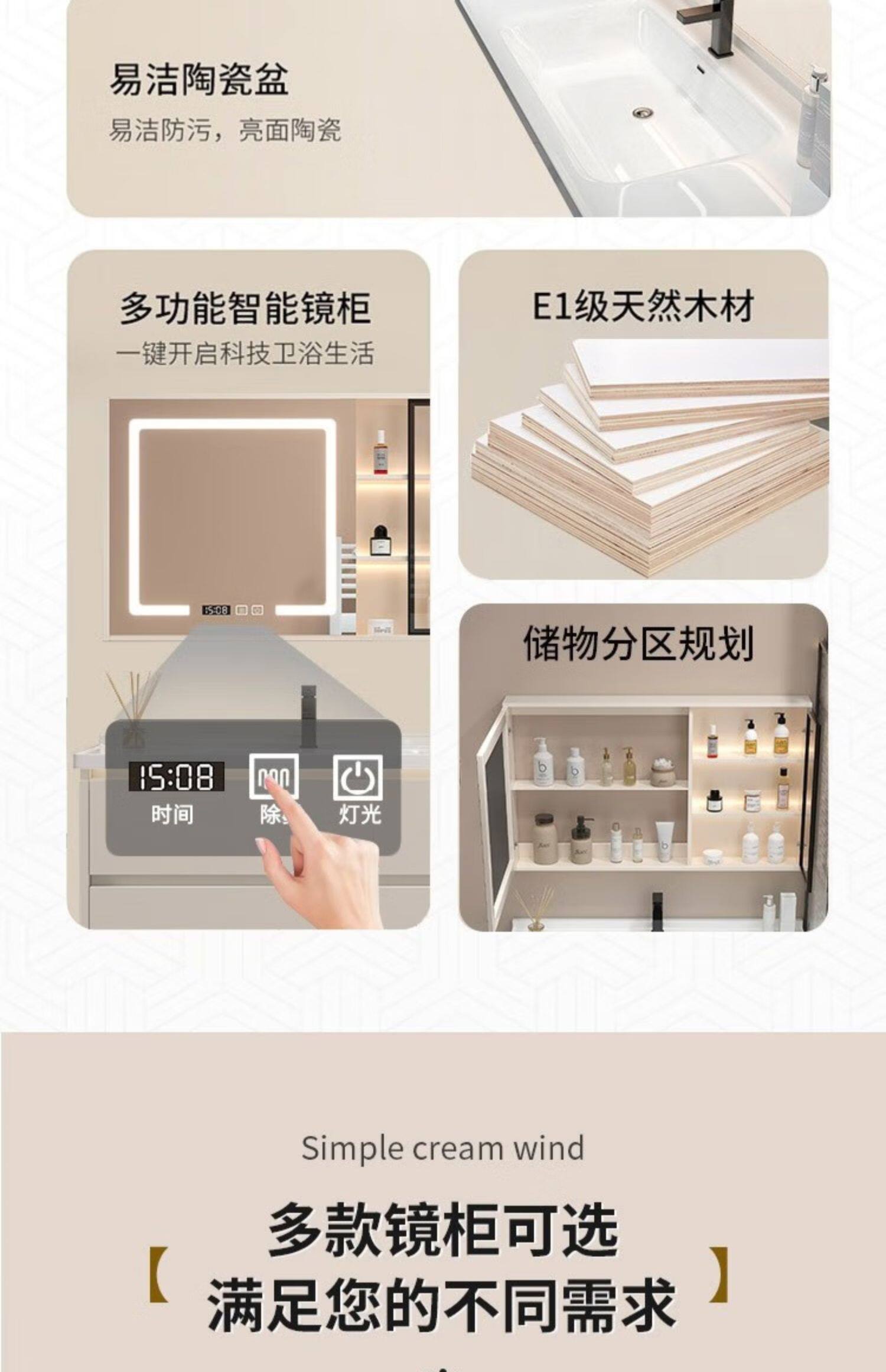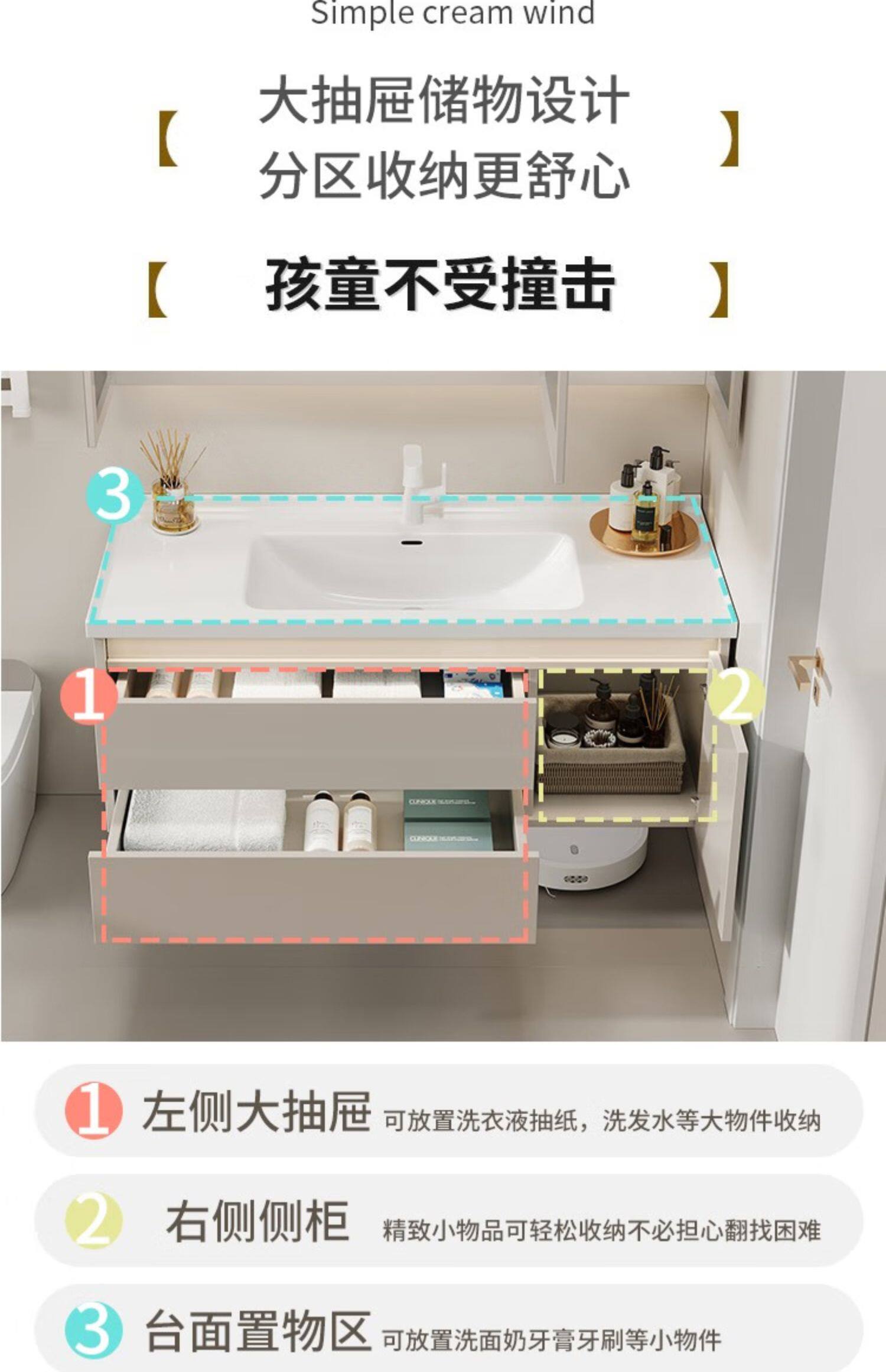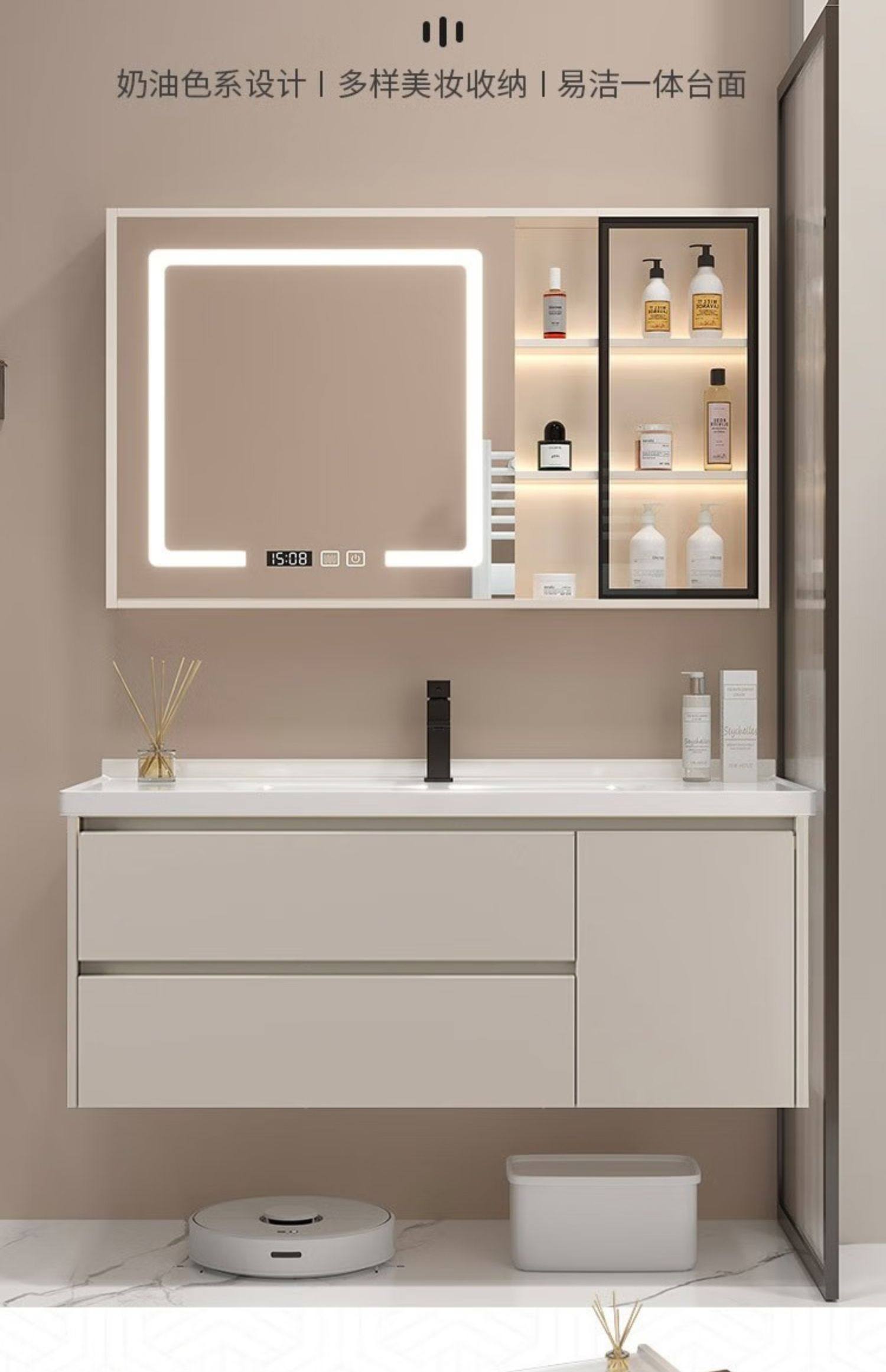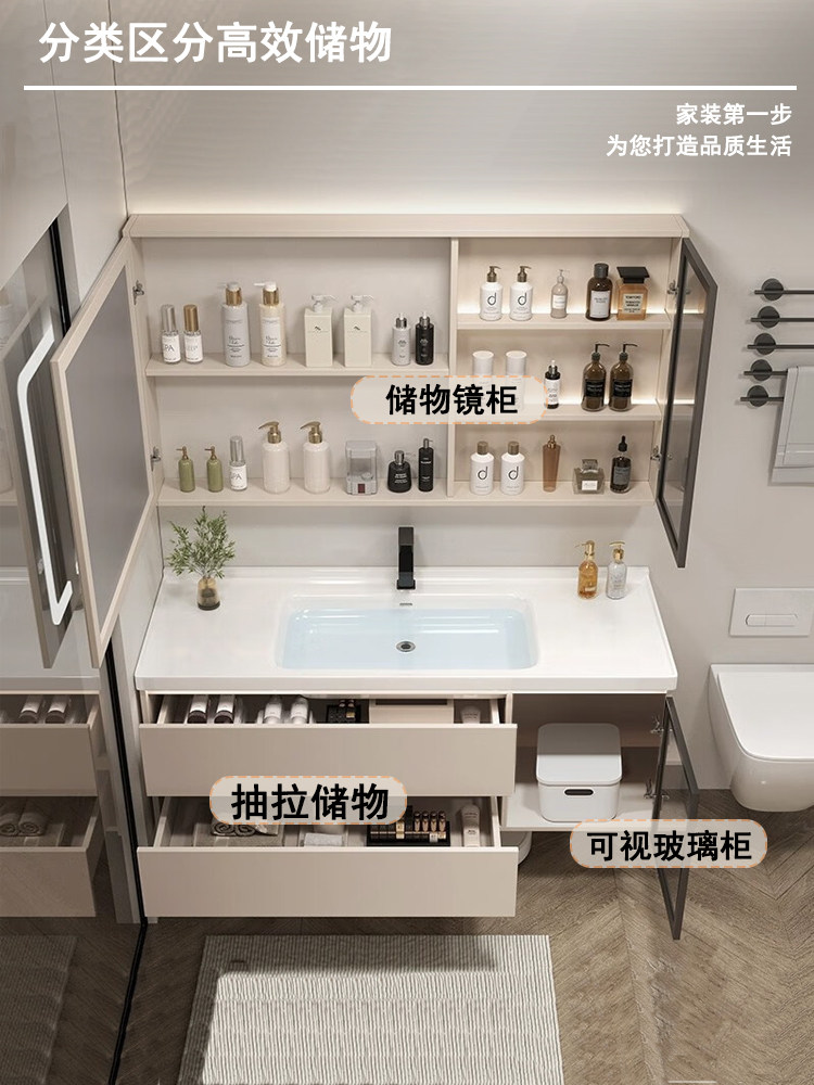 佐仓 Интеллектуальная шкаф для ванной Керамики -в одном ванной встроенной для мытья стола для мытья бассейна кремовый стиль комбинация шкафа шкафа