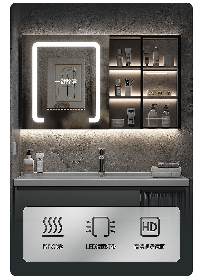 Легкий роскошный интеллектуальный шкаф для ванной комнаты Комбинированное керамическое интегрированное мыть
