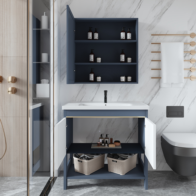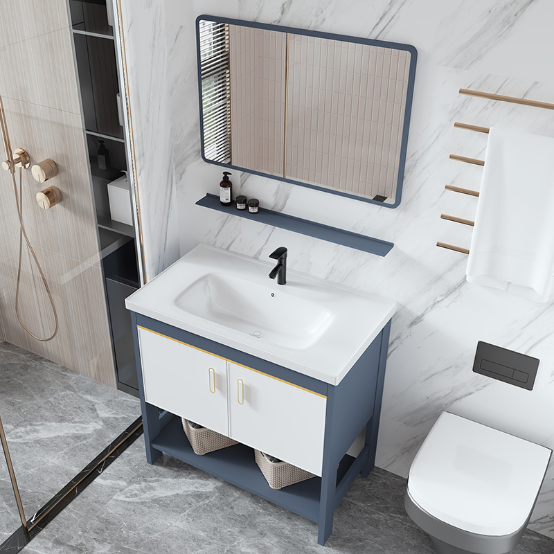Новый космический алюминиевый шкаф для ванной комнаты комбинация туалета туалета в туалете керамического бассейна, чтобы упасть на балкон Washbasin