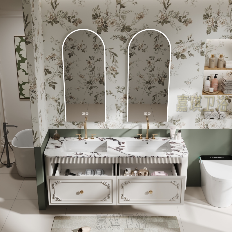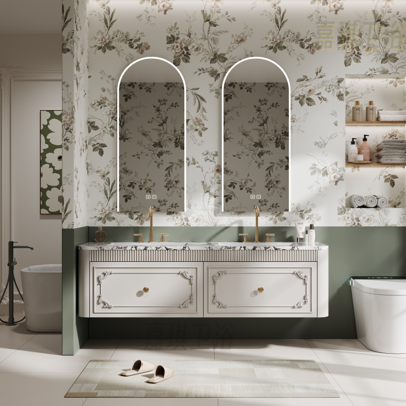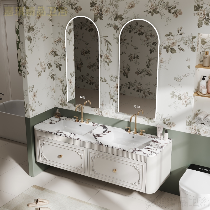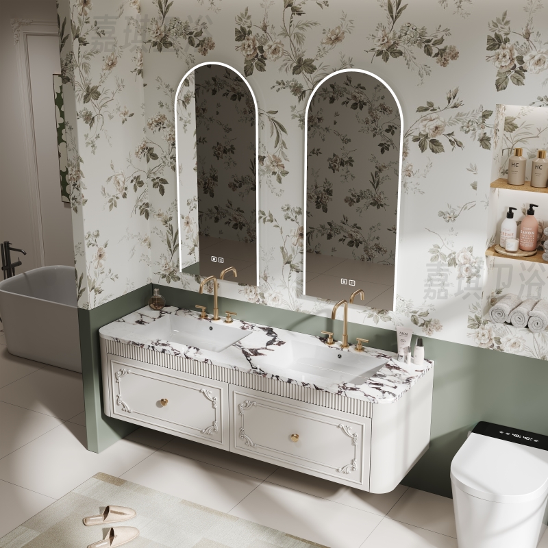 Французский шкаф для ванной комнаты Комбинированная туалет Bulgari Countertop, туалет санитарного шкафа американского стиля, вымойте пруд с бесшовным двойным горшком
