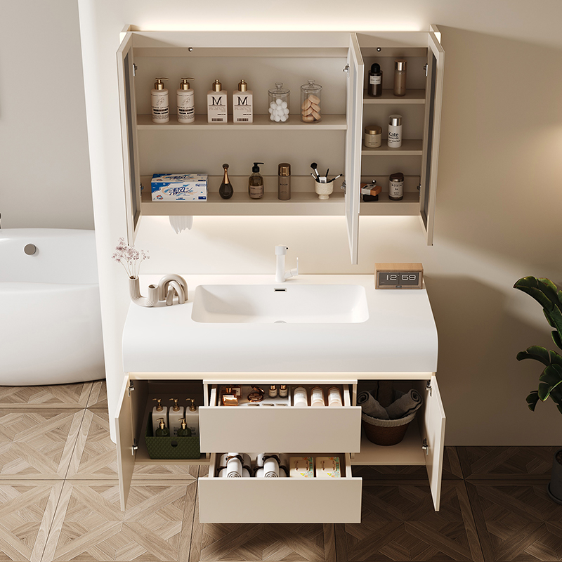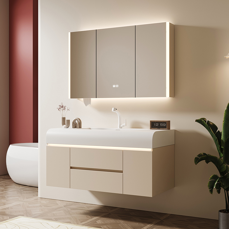 Новый кремовый шкаф для ванной комнаты Комбинированная кожа Ceramic интегрированная ручная ручная ручная рука