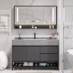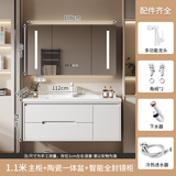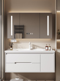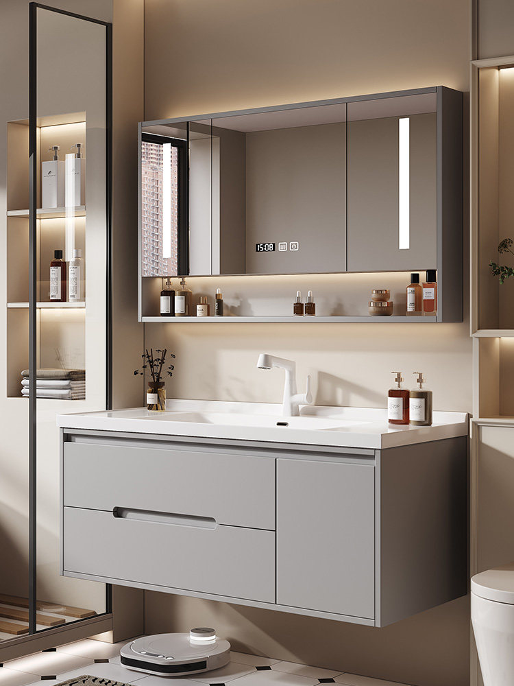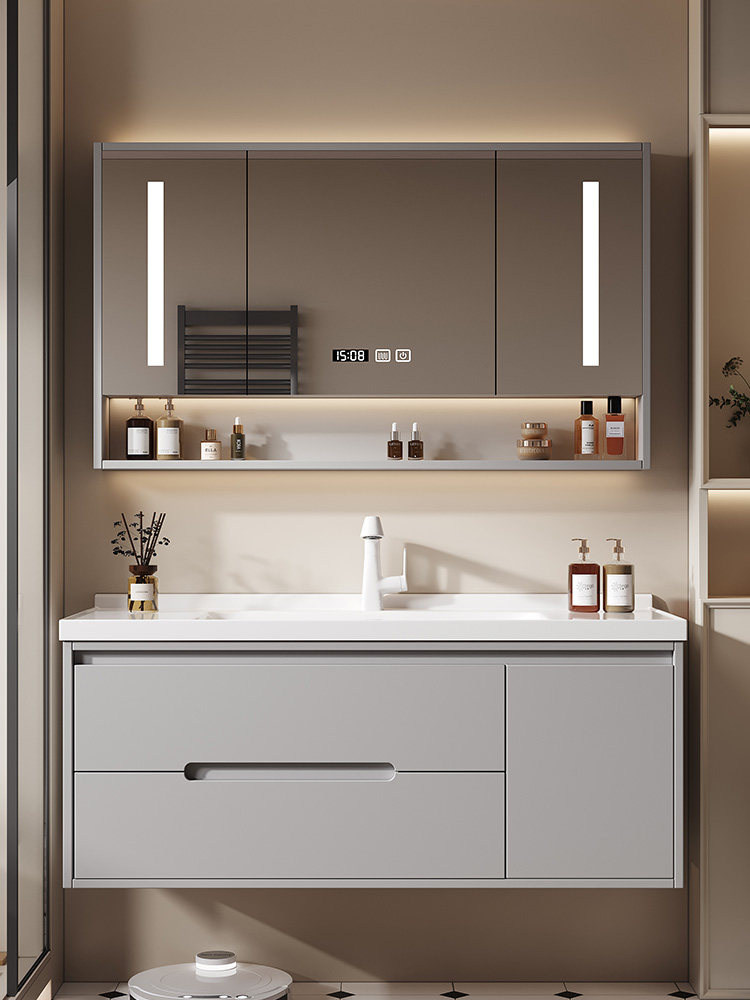Светлая роскошная дубовая дверная панель, комбинация шкафа для ванной комнаты, керамическая встроенная раковина, умывальник для ванной комнаты, умывальник, умывальник