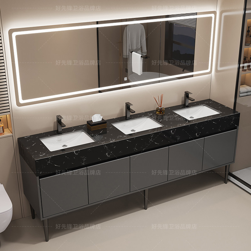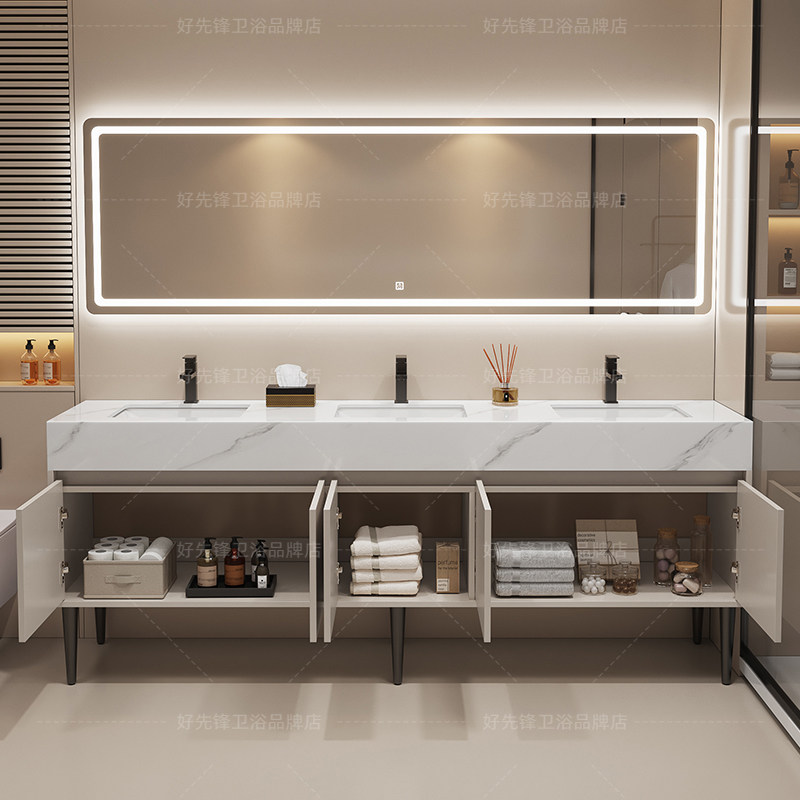 Мраморный напольный шкаф для ванной комнаты с двойной раковиной, комбинированная общественная ванная комната, стол для мытья рук и лица, раковина для унитаза с тремя раковинами