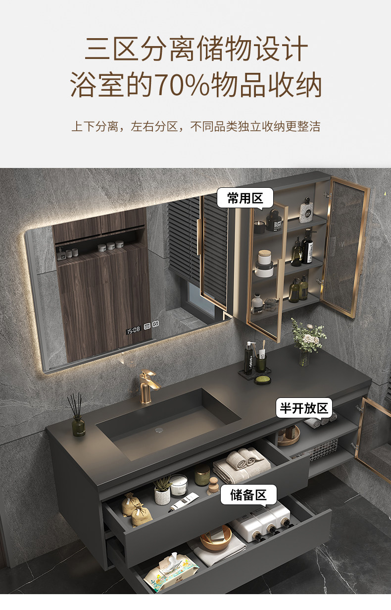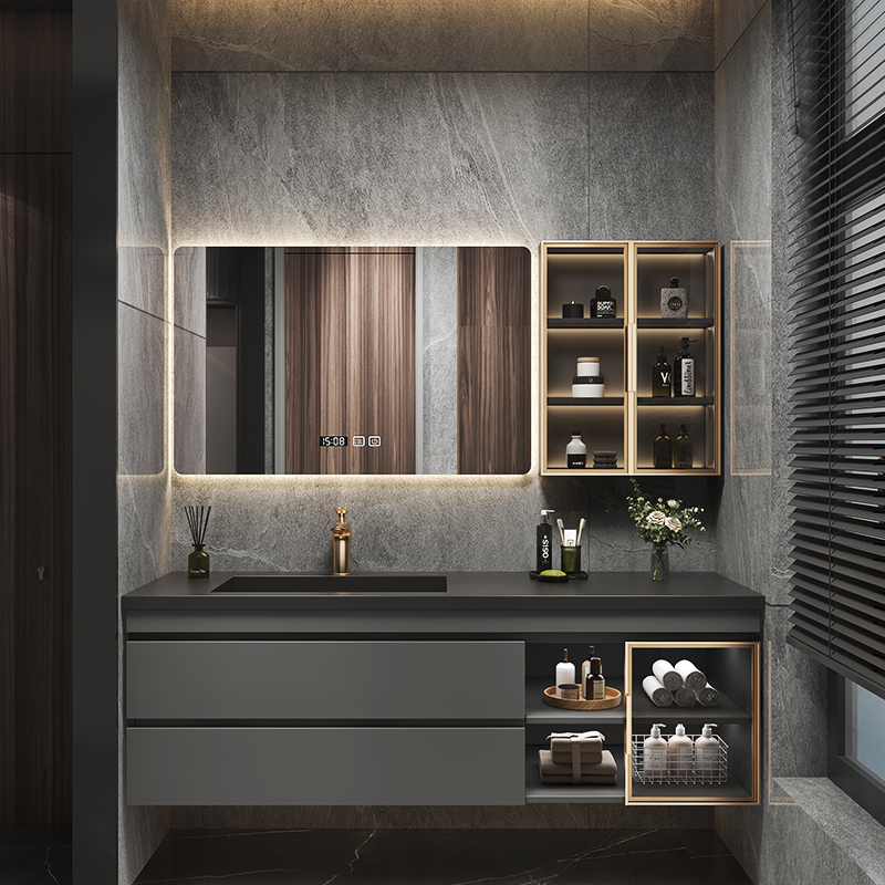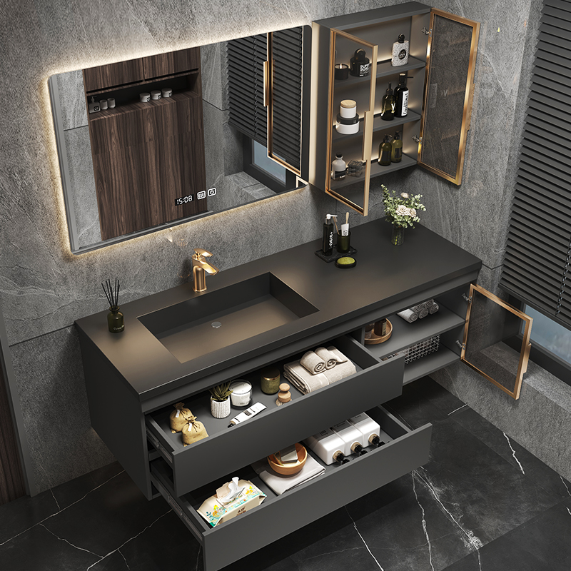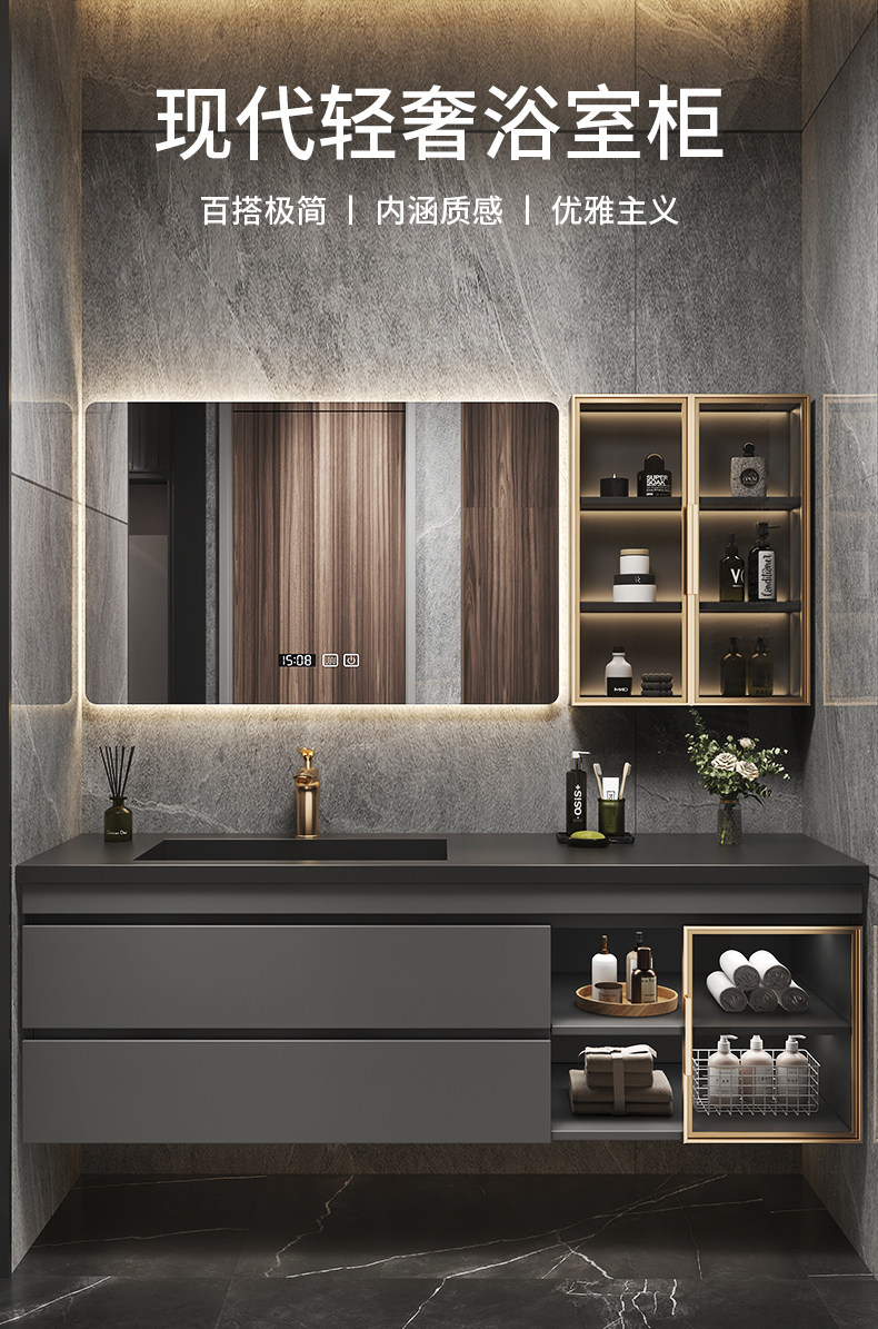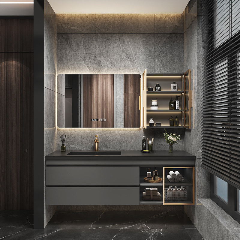 Легкий роскошный сланцевый керамический бесшовный интегрированный умывальник для ванной комнаты, комбинация современного туалетного шкафа, умывальник, умывальник для рук