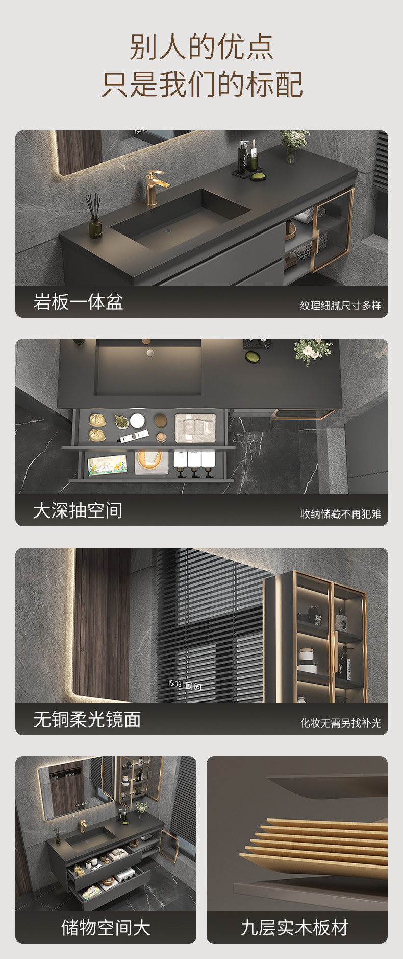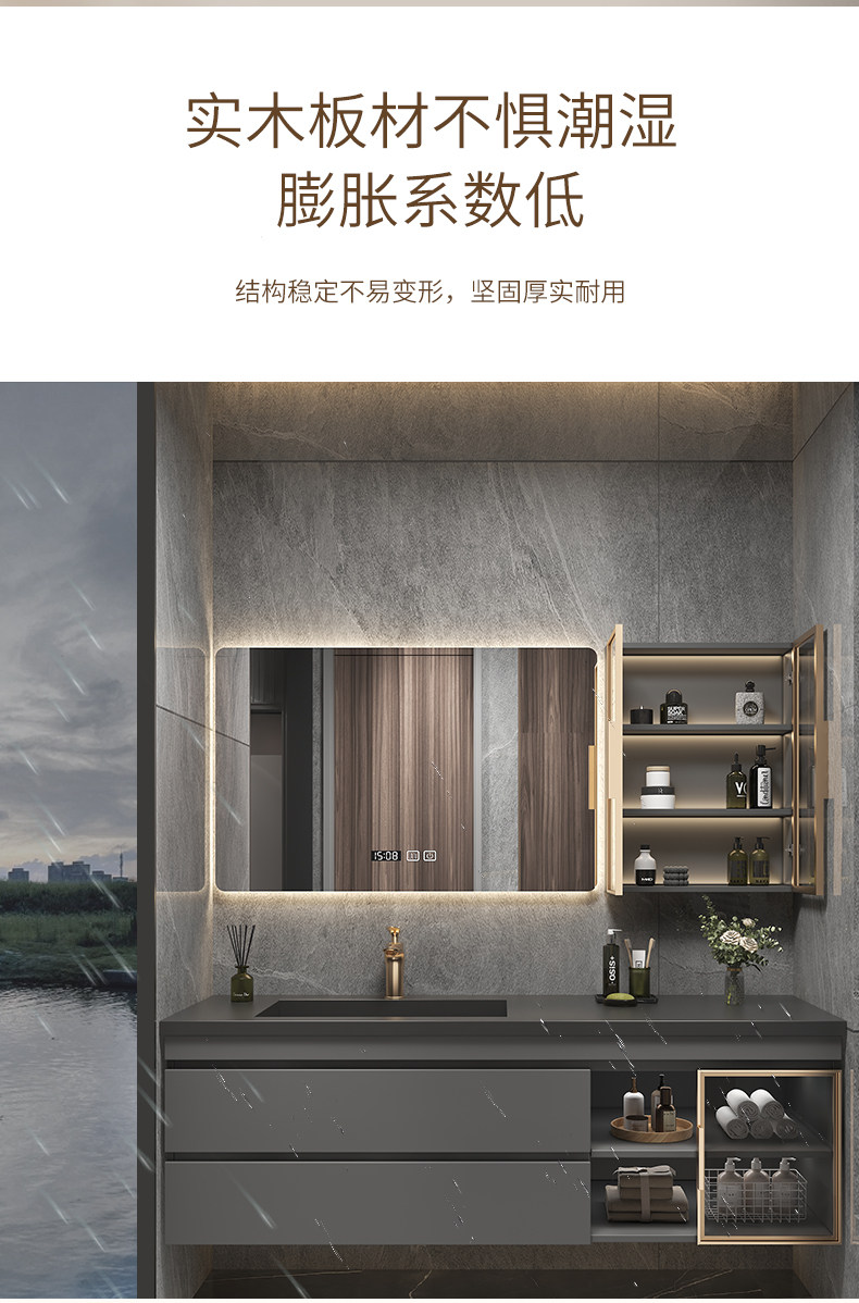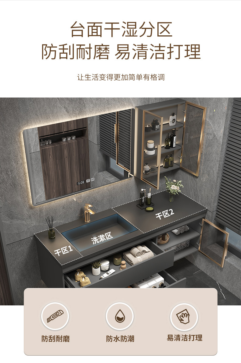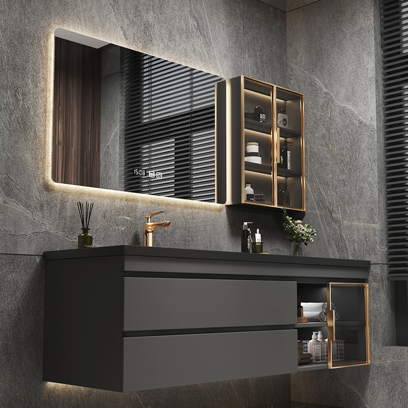 Легкий роскошный сланцевый керамический бесшовный интегрированный умывальник для ванной комнаты, комбинация современного туалетного шкафа, умывальник, умывальник для рук