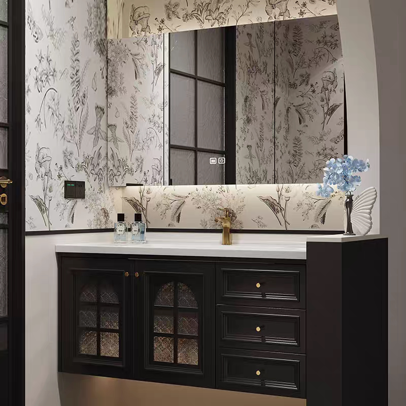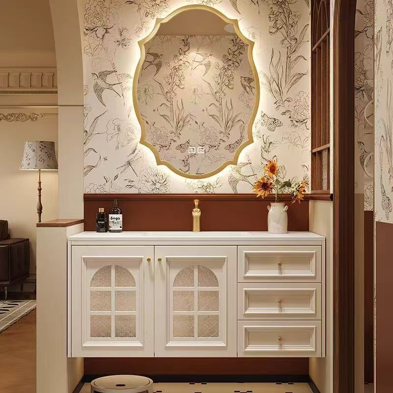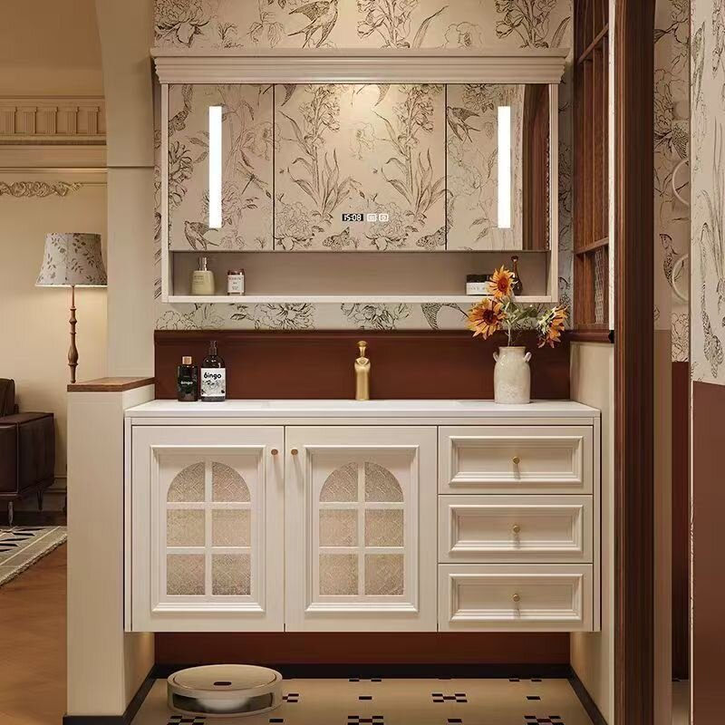 Французский светлый роскошный цельный деревянный керамический встроенный умывальник, шкаф для ванной комнаты, ретро, шифер, бесшовная раковина, комбинированный умывальник для ванной комнаты, шкаф для умывальника