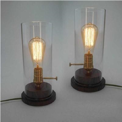 Деревянная настольная лампа, стеклянная лампа накаливания, ретро лампочка для кровати, в американском стиле