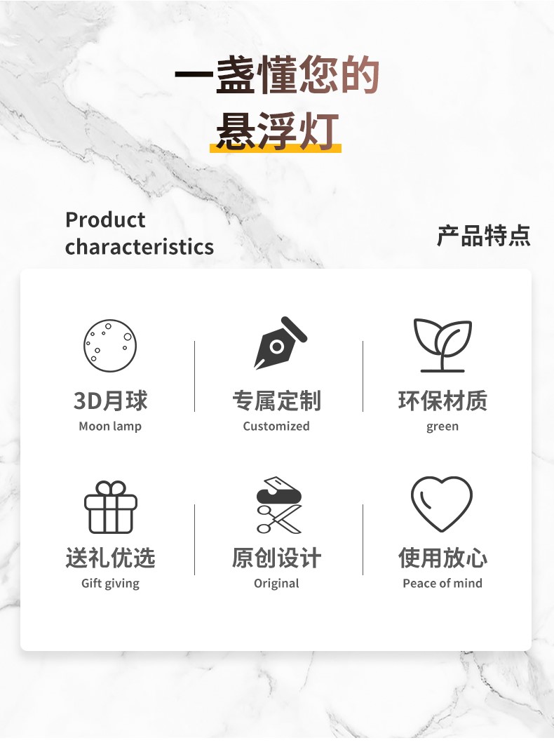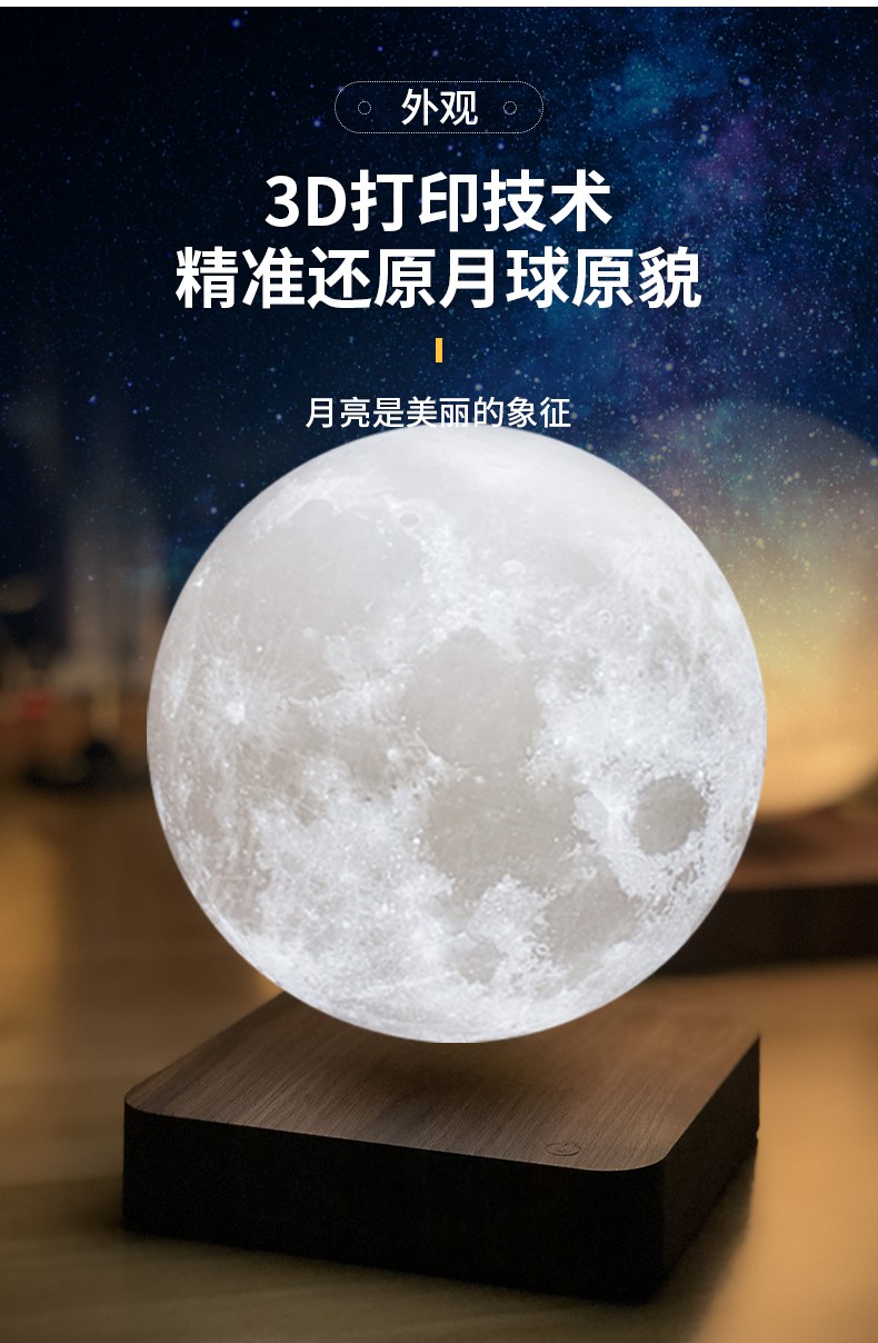 Магнитная левитация, луна, креативная настольная лампа, светильник, ночник, 3D, подарок на день рождения