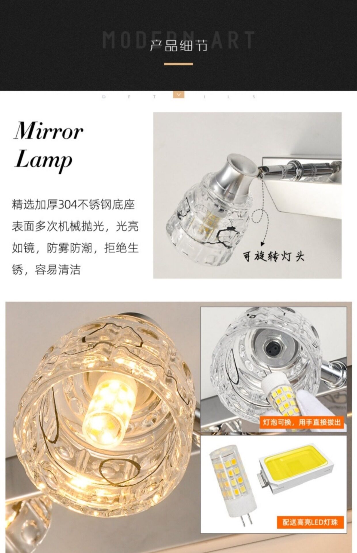 Лосьон, светодиодные передние фары для зеркала для ванной комнаты, бра, лампочка, зеркало, европейский стиль
