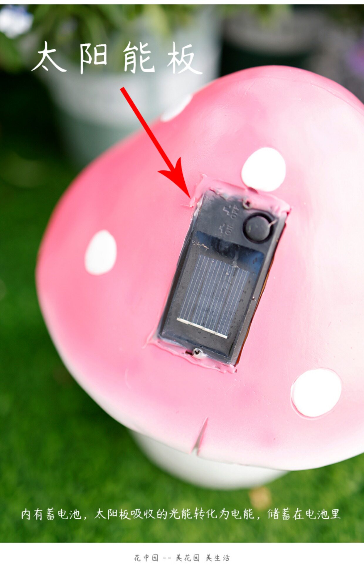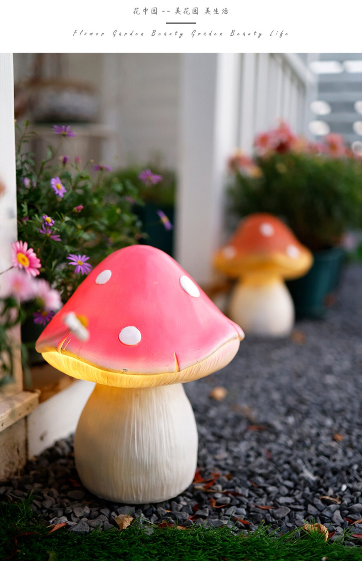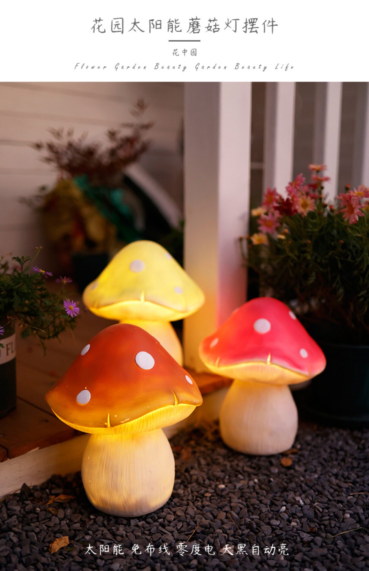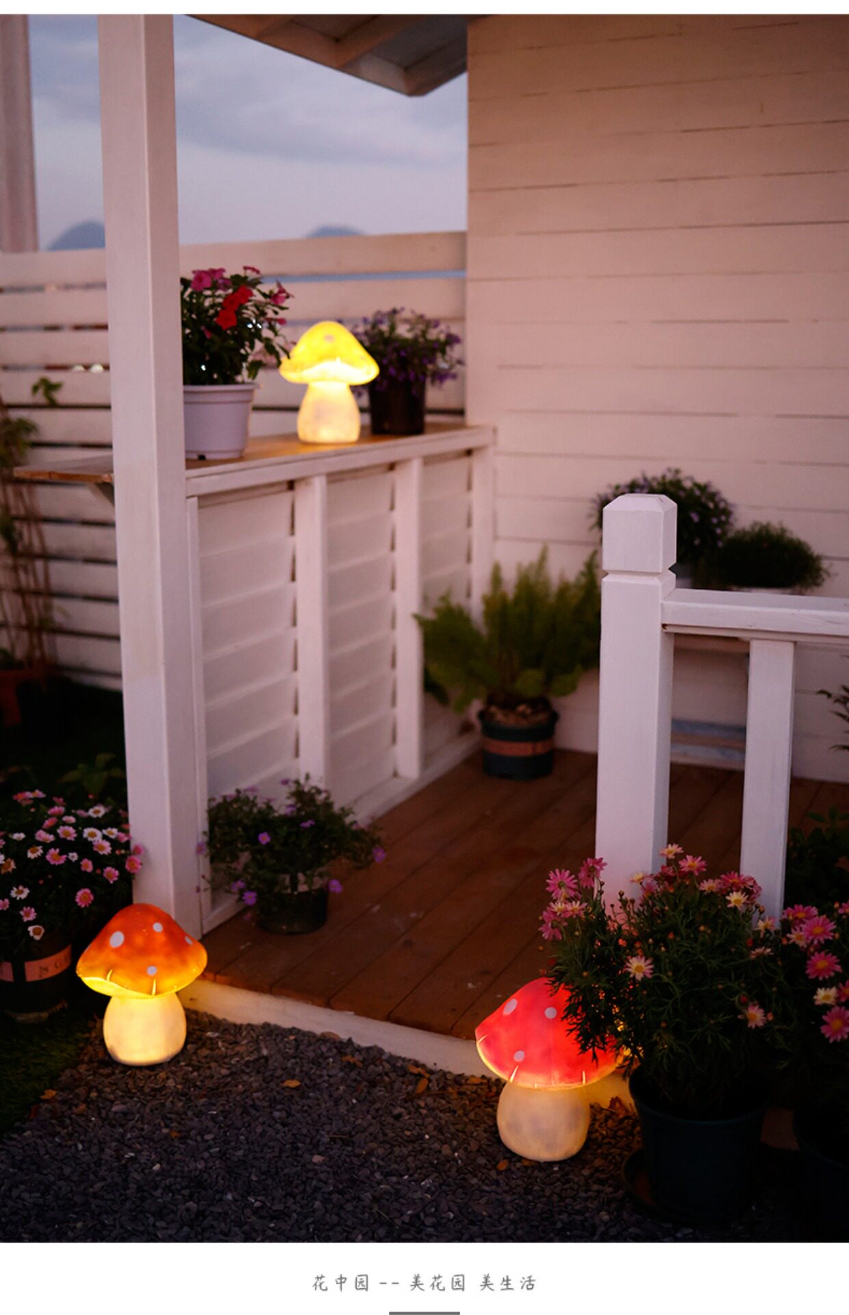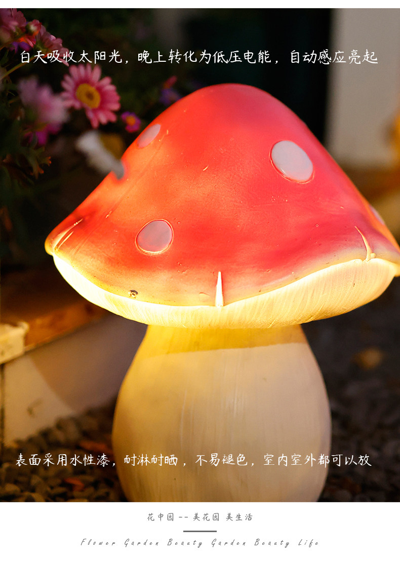 Солнечная грибная лампа, открытый двор, балкон, планировка сада, терраса, украшение на верхнем этаже, лужайка, ночник
