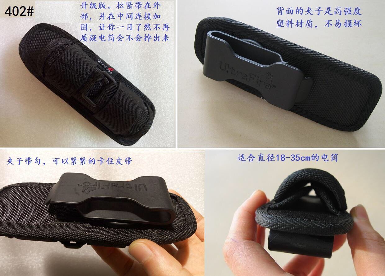 5. Фонарики или другие элементы, подходящие для диаметром 18-35 мм (диаметр), подходят для большинства фонарика AA, 18650 (401/402 подходят для фонарика 501B, 502B.)