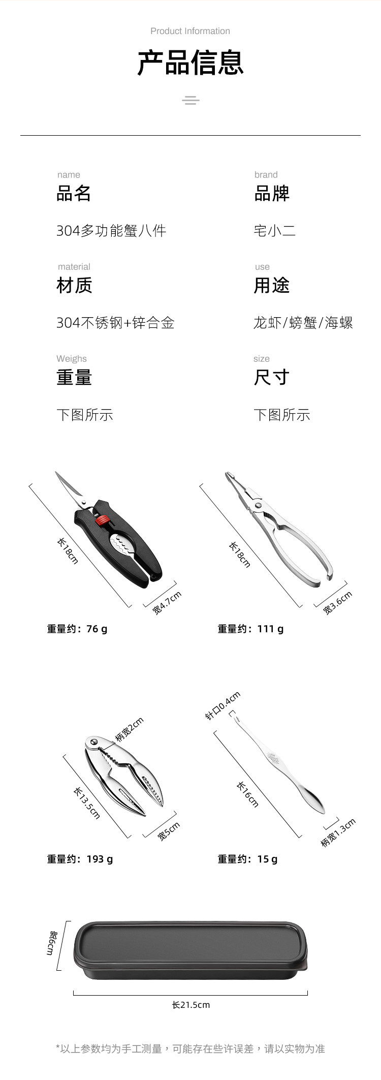 304 Краб восемь кусочков инструментов, проводящих крабов