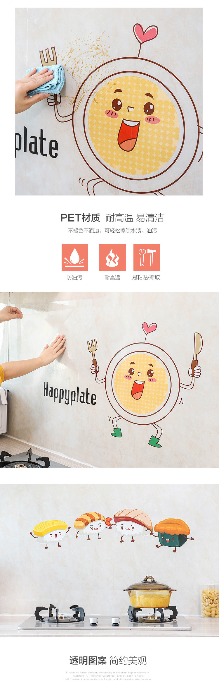Термостойкая прозрачная самоклеющаяся плита, водонепроницаемая наклейка на стену