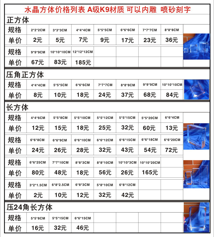 Кристаллические кристаллические блок -резины Crystal Carbing Cubes можно вырезать в дизайне свободного набора кристаллического материала K9