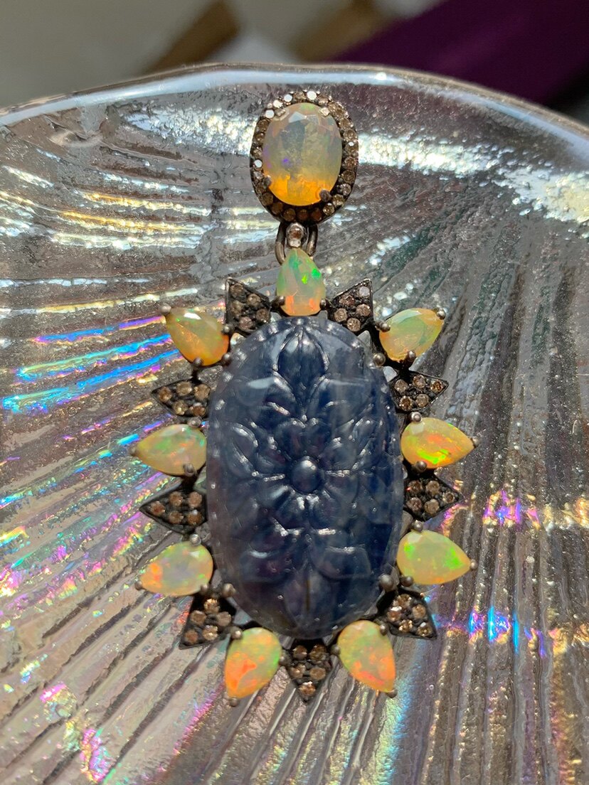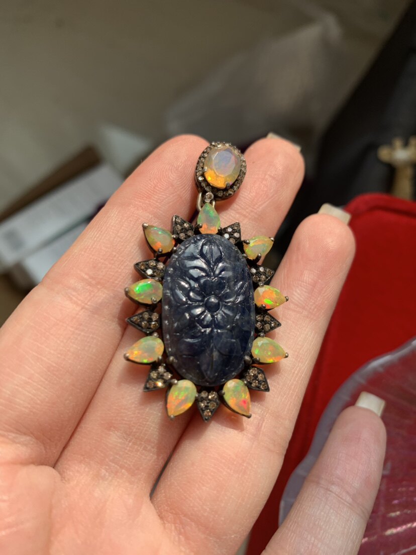 Eyw European British British return Natural Sculpture Tanzan Stone Opal's Diamond Silver Gold
