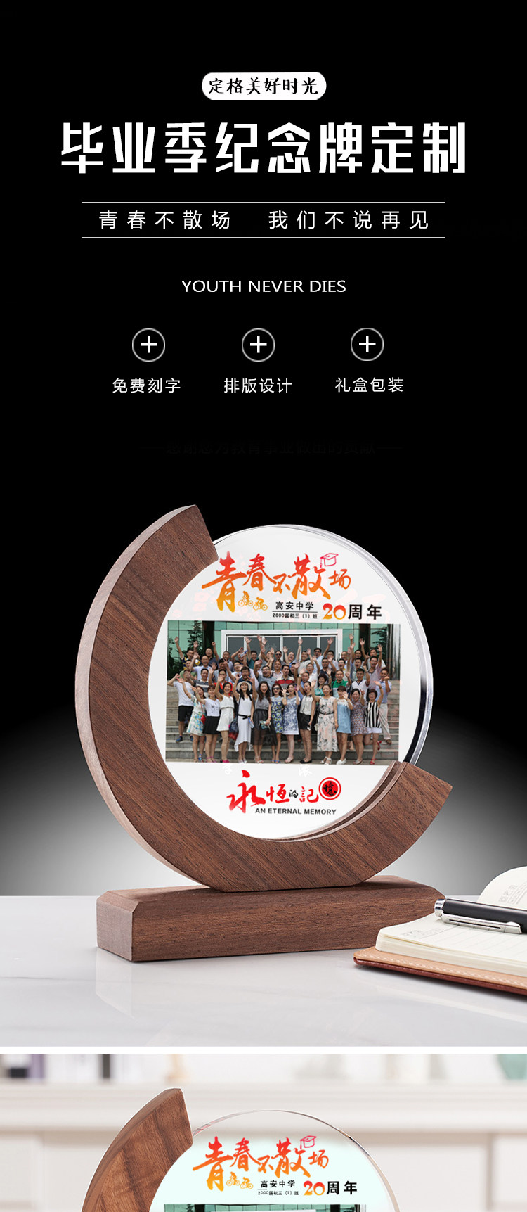 Кристаллическая фотография, установленная на сцене для одноклассника по воссоединению сувениров, студенты выпускной группы