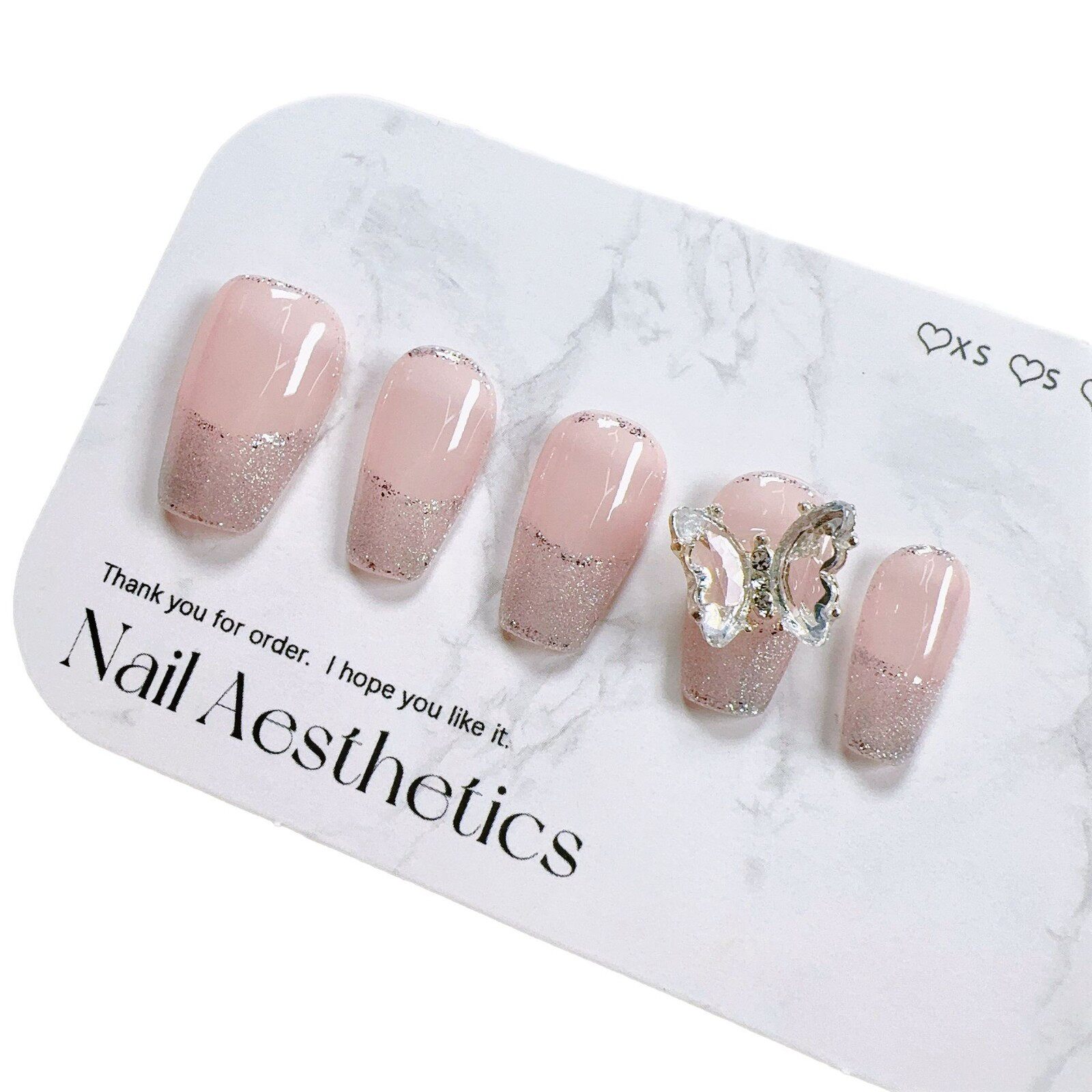 Высококачественный световой крючок во французском стиле, прозрачный ледяной кристалл ручной работы, светотерапия для ногтей, короткая лестница, роскошный ледяной сердечный хрустальный бабочка