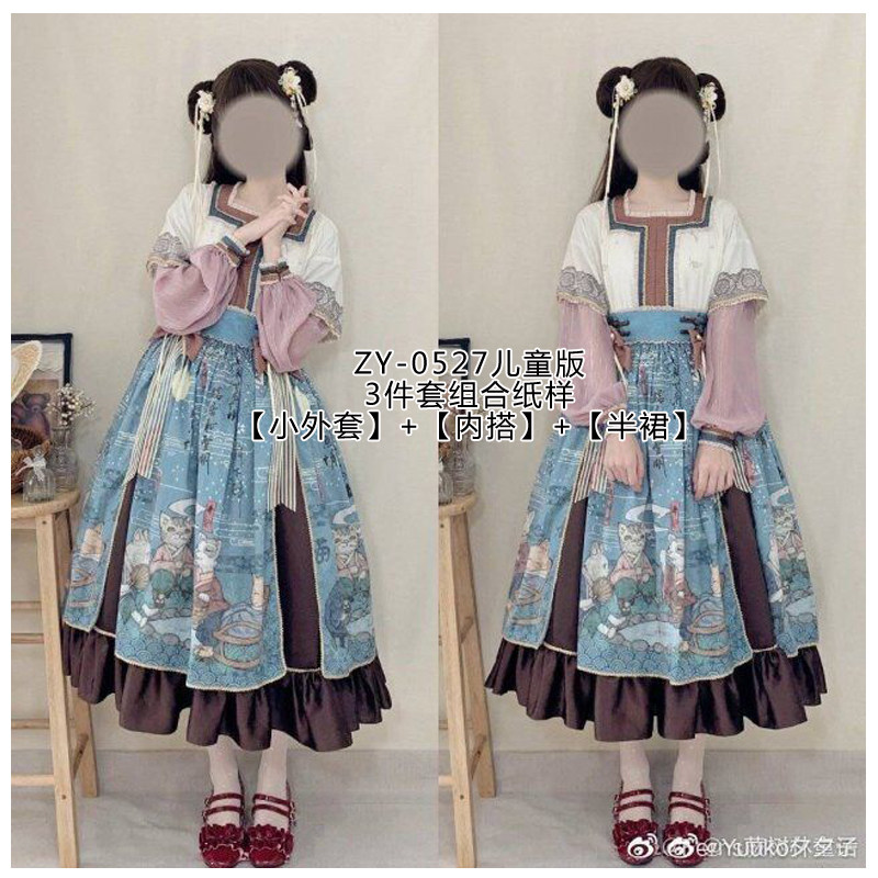 Детский комплект, юбка, стиль Лолита, квадратный вырез, высокий воротник, 3 предмета