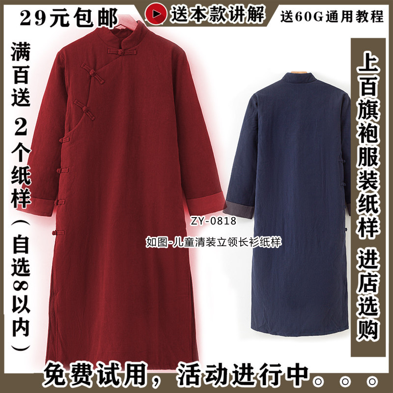 ZY-0818 Дети, стоящие в длинной рубашке в династии Цин, Китайская Республика, студенческая студенческая одежда, похожая на бумажную одежду для хлопчатобумажной одежды