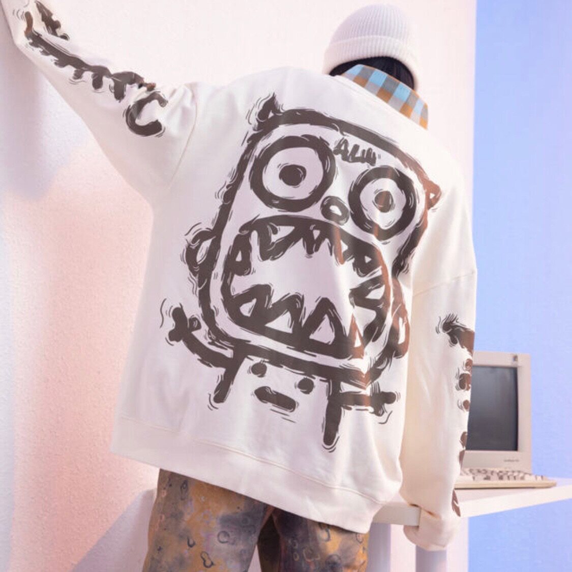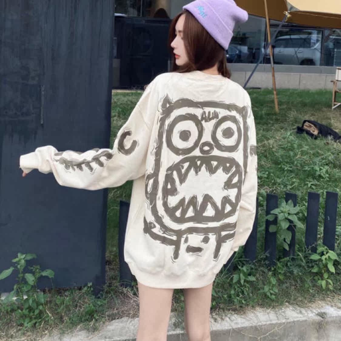 Монстр, толстовка с круглым воротником, осенняя трендовая парная одежда для влюбленных для отдыха в стиле хип-хоп, оверсайз