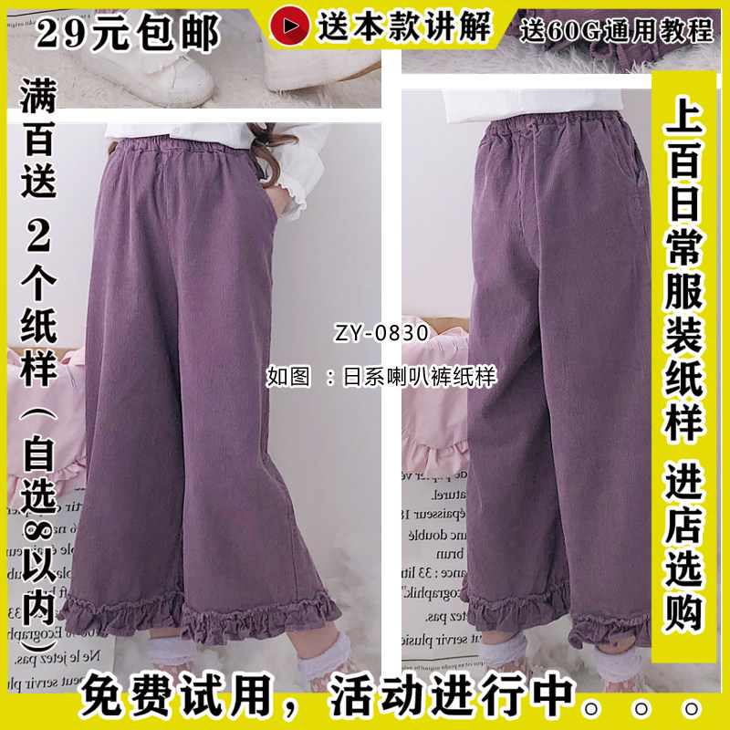 ZY-0830 Японский мягкий милый расклешенные брюки, похожие на бумажные брюки и рисунки, Микро 9-точечные брюки Бумажная образец 1-1 одежда