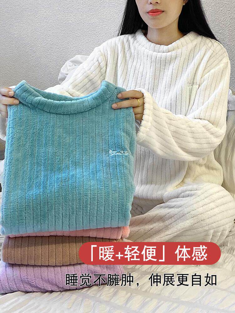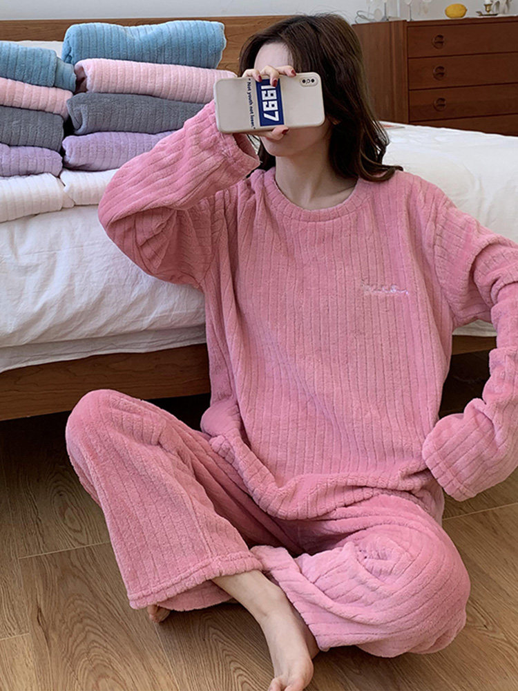 Демисезонная пижама, термобелье, коралловый бархатный лонгслив, утепленный комплект, штаны