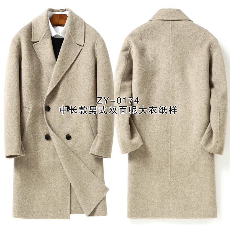 Длинное двусторонное кашемировое шерстяное пальто, средней длины