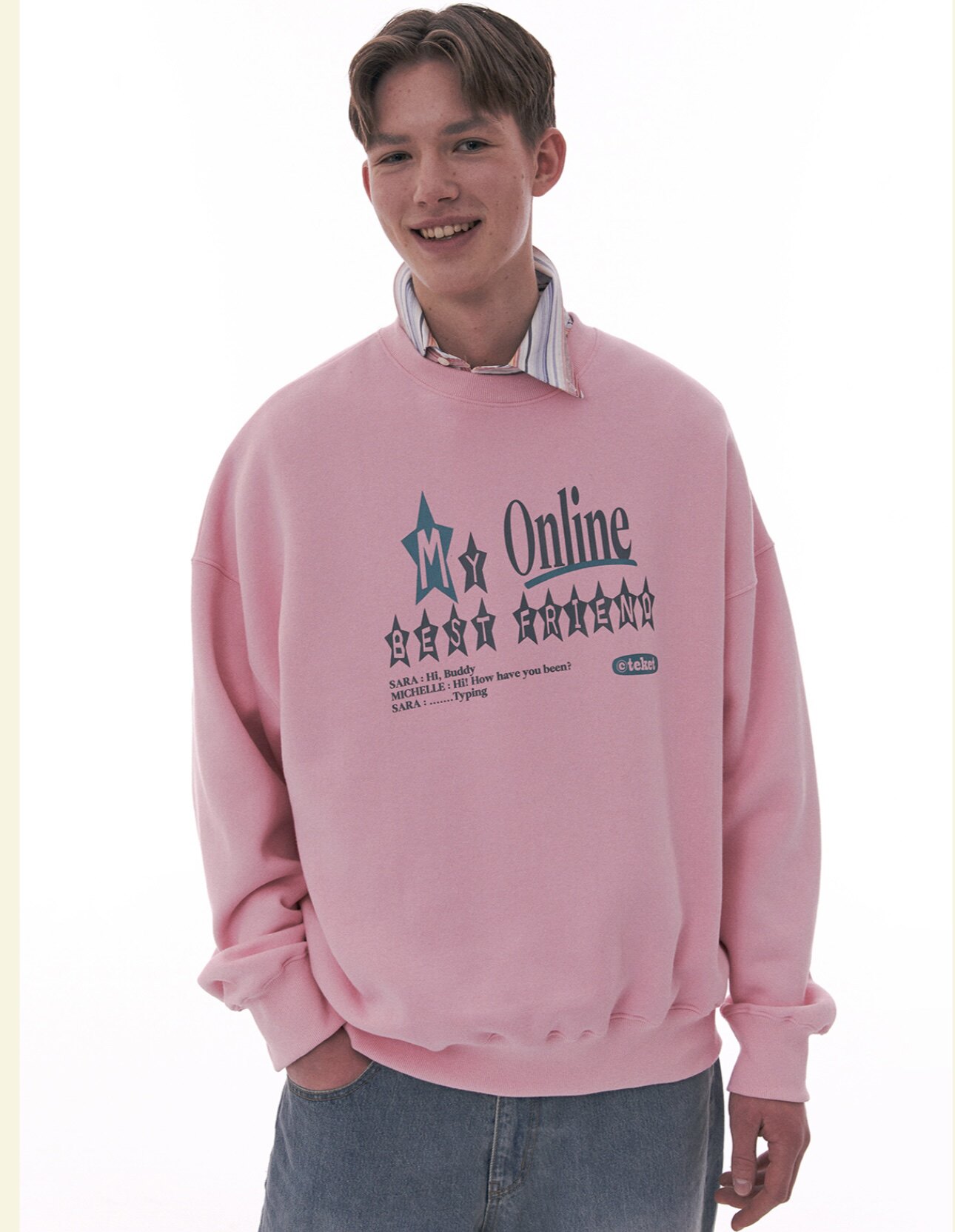 [Корейское место] Teket 23 New Online Friend Series Series Thin Velvet Tower Sweater Американский стиль