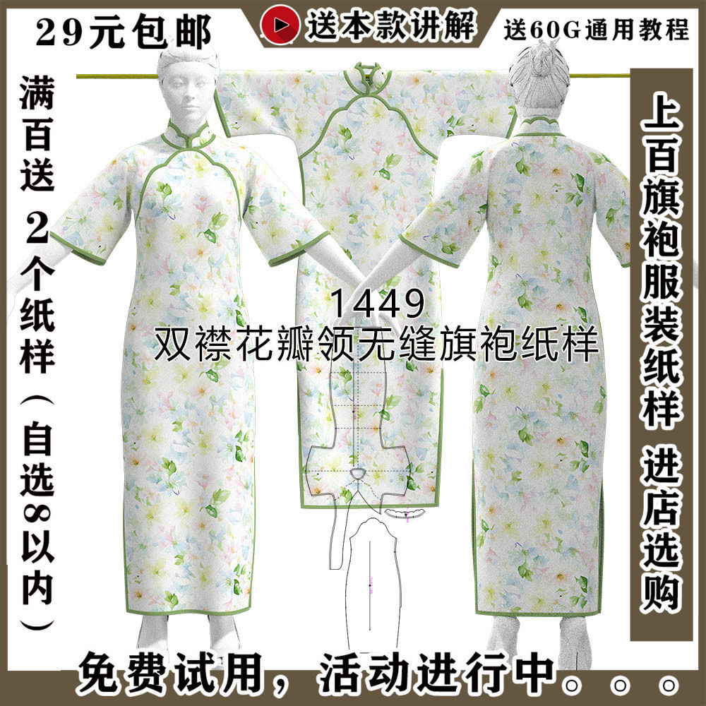 1449 Planetic Double Laboratory Let Petal воротник Cheongsam Paper образец 3D прототип рисунок [эксклюзивная продажа картин]
