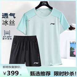 Li Ning, быстросохнущий шелковый спортивный костюм, летняя тонкая футболка с коротким рукавом, комплект для спортзала, форма для бадминтона, короткий рукав