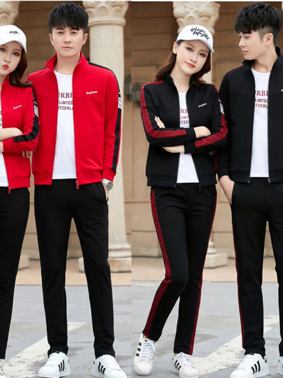 Демисезонный спортивный костюм, хлопковый лонгслив, комплект для влюбленных, для бега, 3 предмета