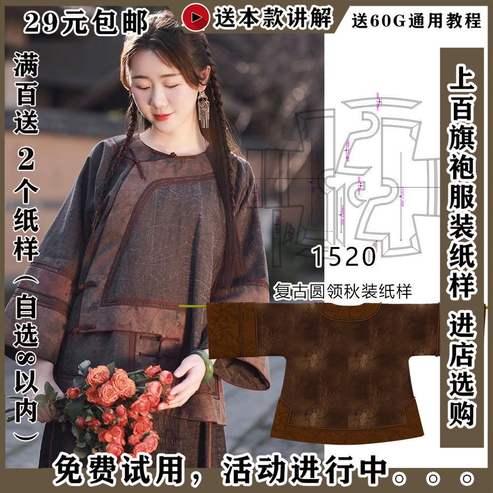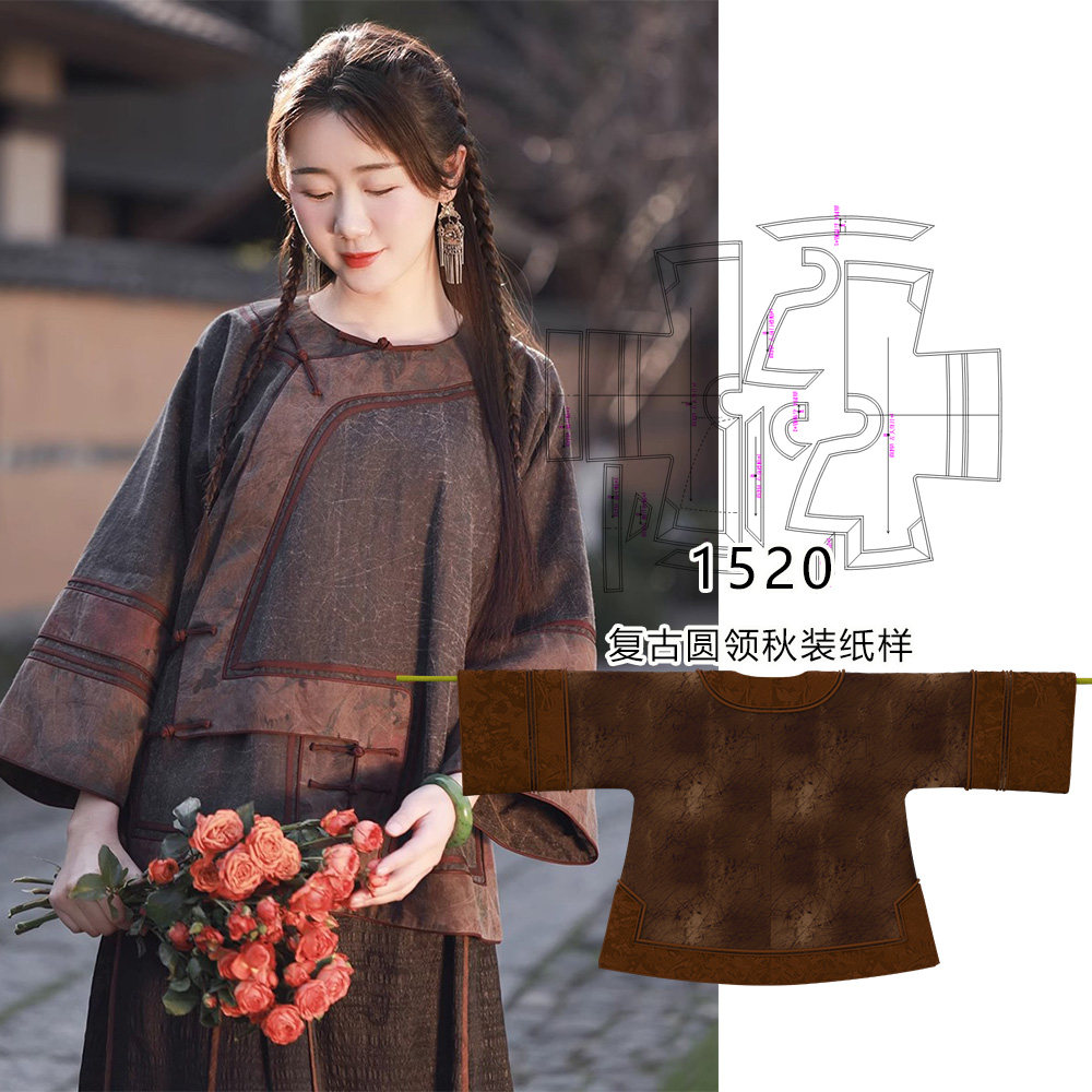 1520 Retro Qinghan Женская одежда круглой шеи.