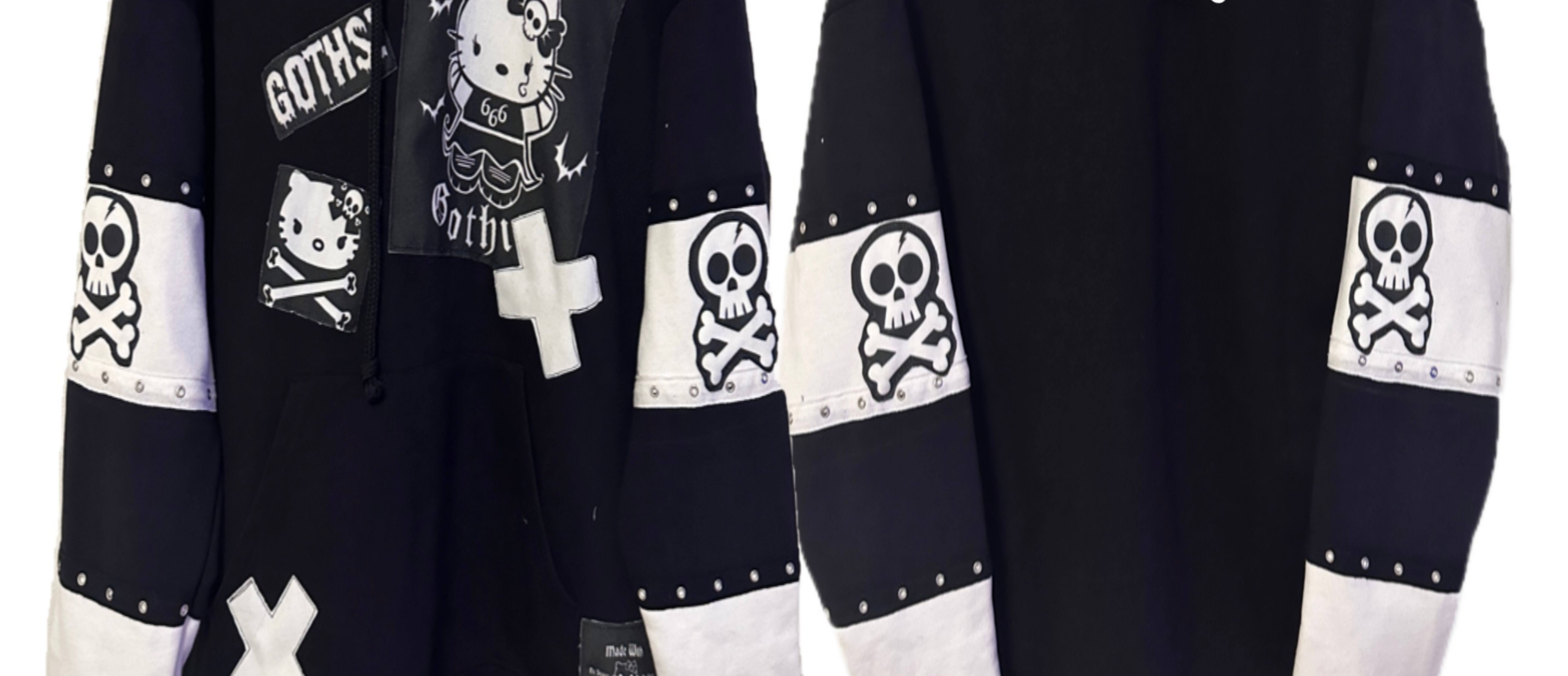 RedDevil субкультура y2k черно-белая строчка hello Kitty толстовка римейк нишевая толстовка