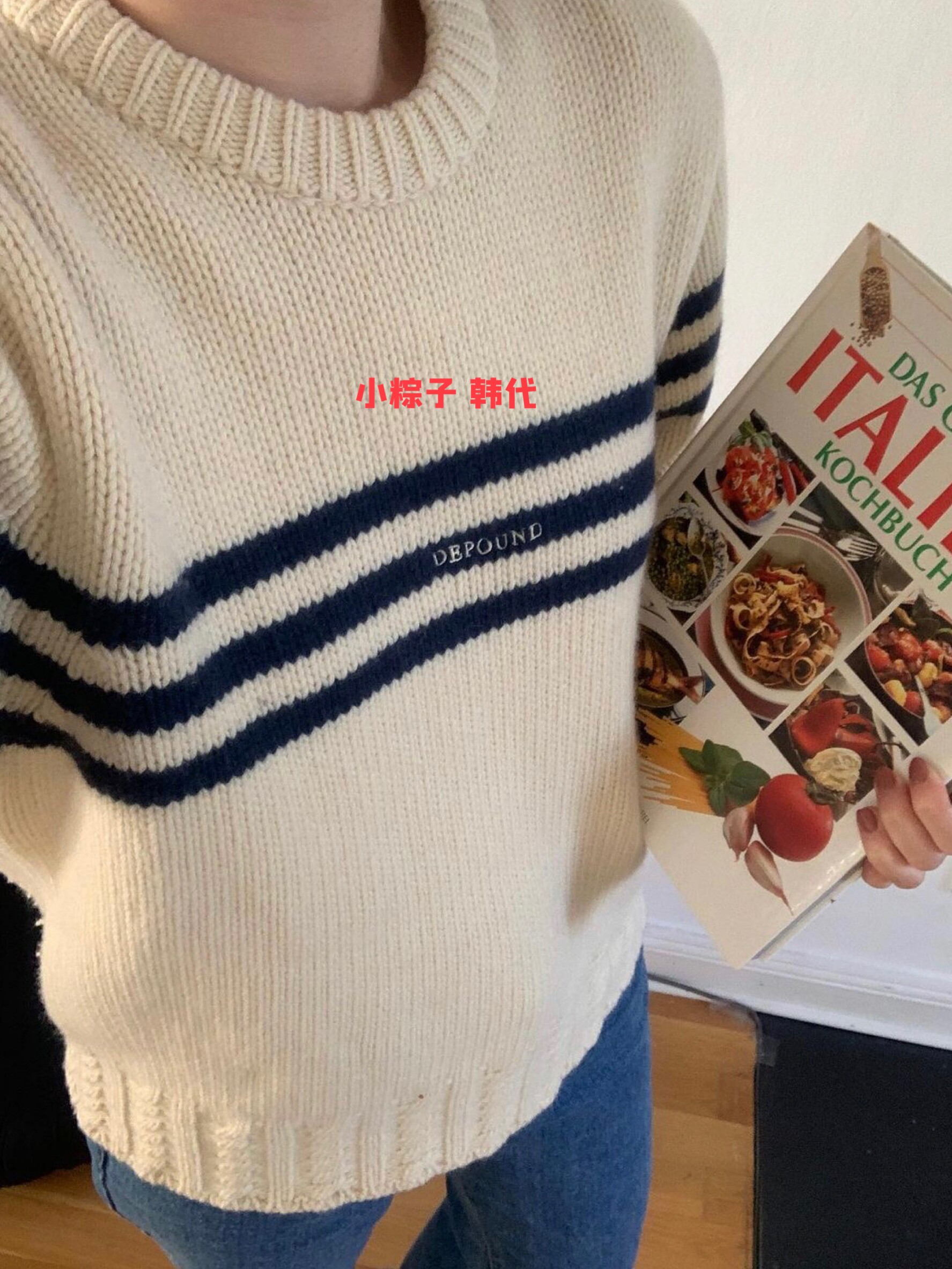 Сяо Зонцзи Династия Ган. Разместите три -колор -свитер корейский нишевый бренд простота и универсальный содержит шерсть подлинное поколение
