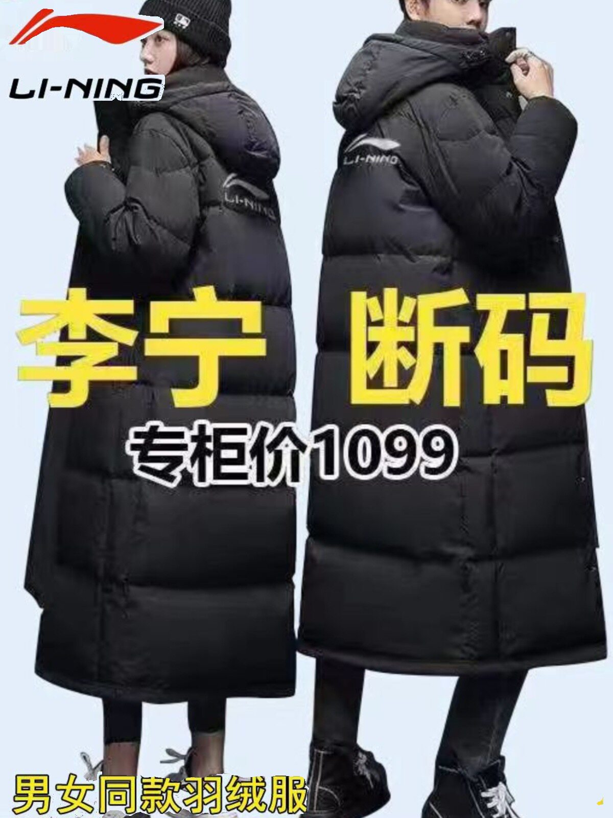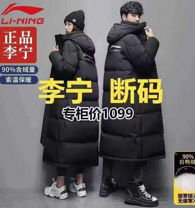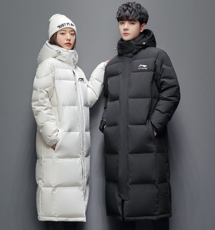 Li Ning, длинный зимний пуховик, бархатная спортивная куртка для влюбленных, средней длины, коллекция 2023, утиный пух