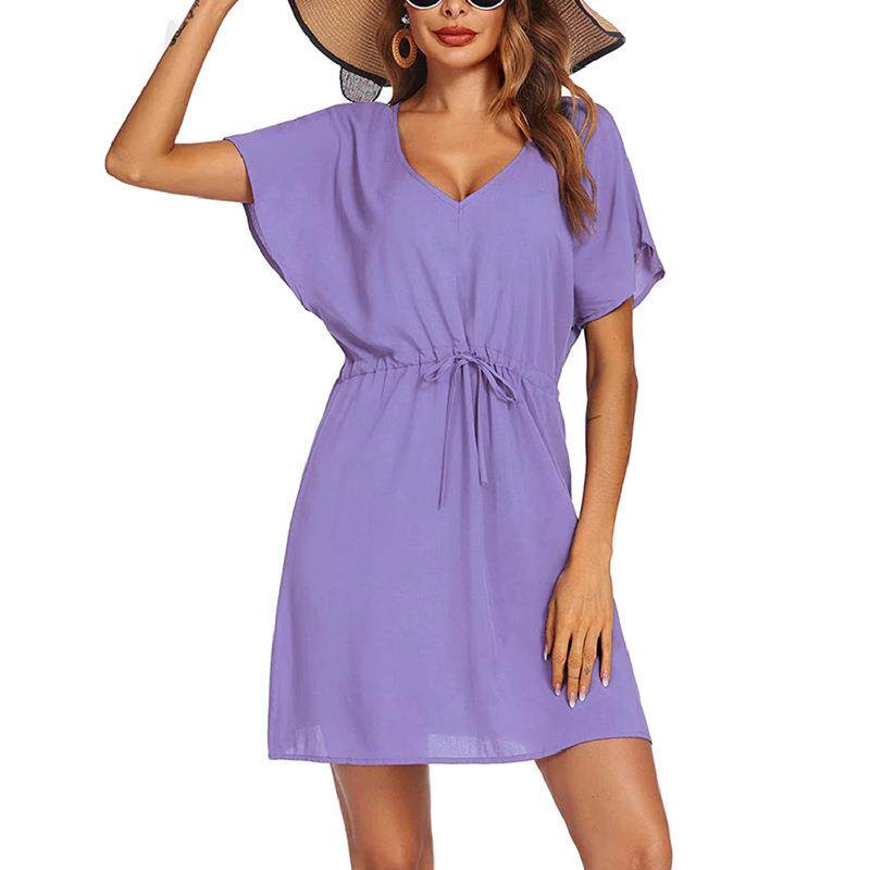 Летний пляжный купальник, корсет, платье, Amazon, короткий рукав, свободный крой, V-образный вырез
