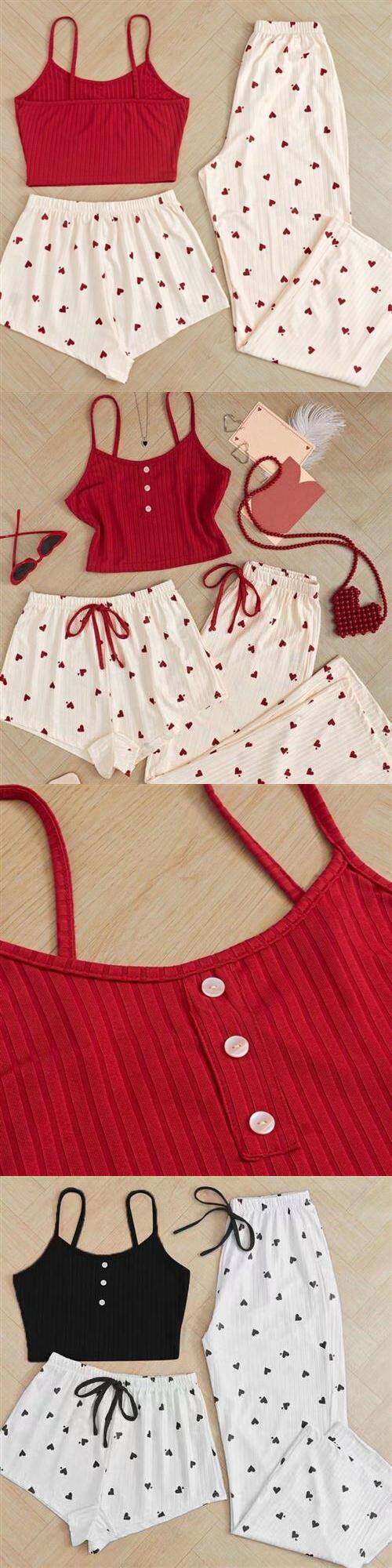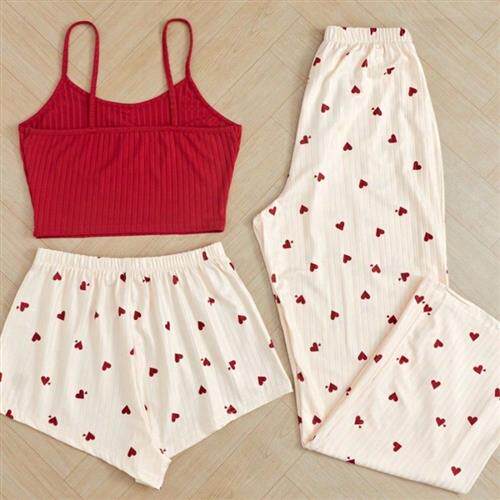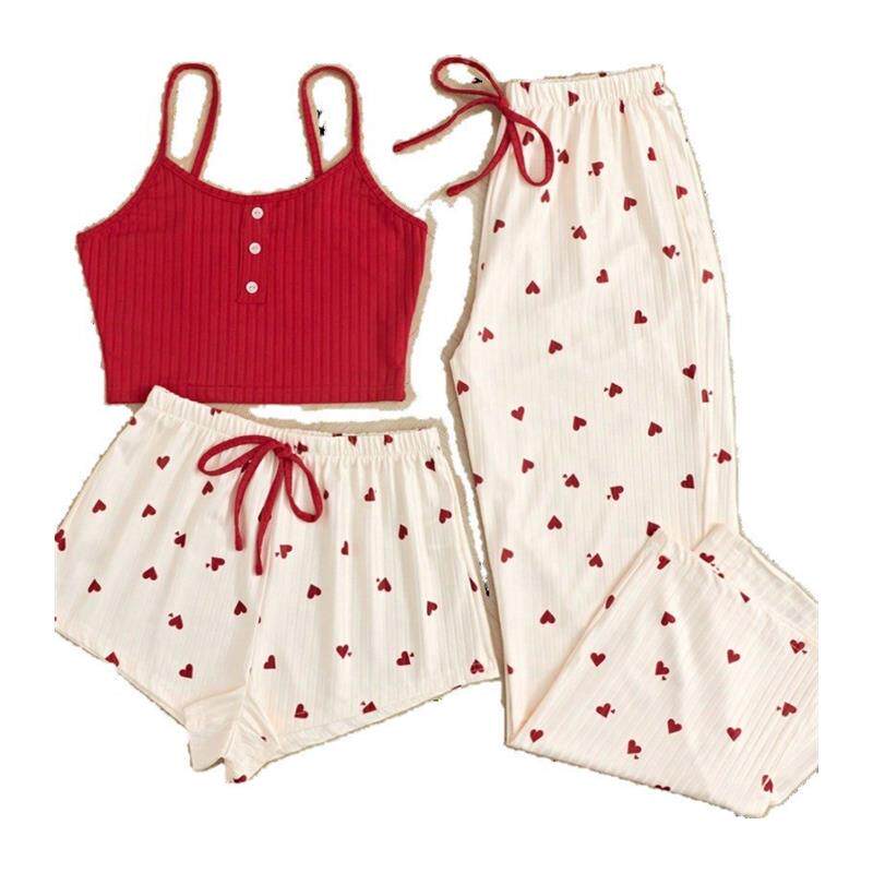 Милая пижама в виде сердечка, милый комплект, шорты, штаны, 3 предмета, изысканный стиль, эффект подтяжки