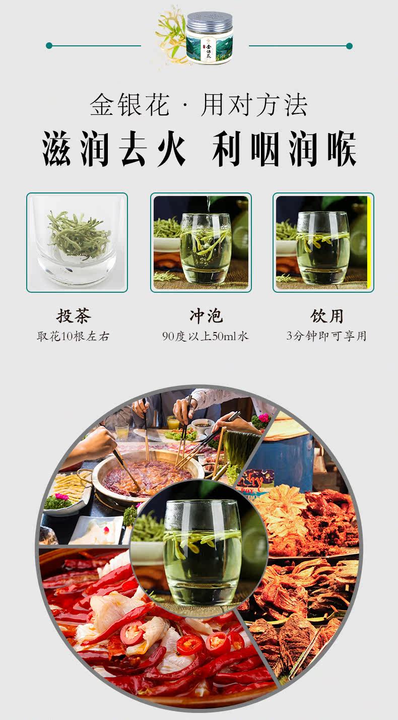 巽天泽 Золотой и серебряный цветочный чай не ложится спать допоздна, чтобы очистить огонь в летних сухих цветах Детские китайские материалы. Материалы.