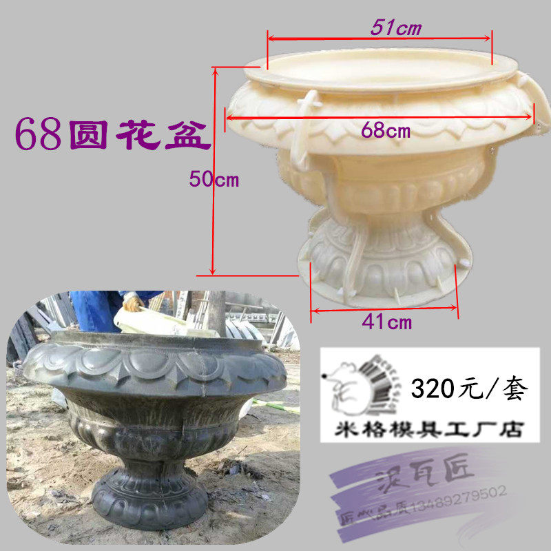 68 круглого цветочного горшкаСпецификации внешней модели: общая высота 50 см/верхний отверстие 51 см/нижнее отверстие 41 см/ширина 68 см.