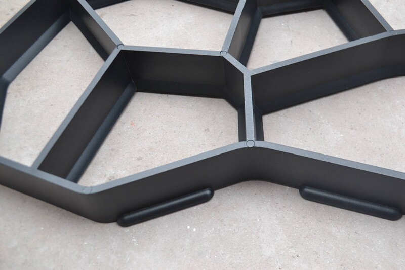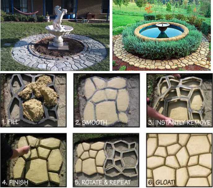 Это пластик из цемента  (или красная грязь) садовая дорожка  , эта форма состоит из нерегулярных отверстий, которые могут заполнить цементную мякоть в форме , затем выравнивайте верхнюю часть рукой. Когда цемент быстро, выньте установленную форму, а затем посыпьте каменным песком на зазоре. Вы можете использовать ее за раз. 50 x50&Путь NBSP; см может быть использован многократно, пока вся дорога не будет завершена.
