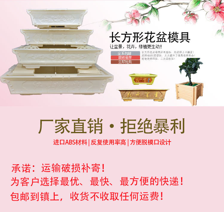 Цветочный горшок, прямоугольная форма, шаблон, прямые продажи с завода, увеличенная толщина