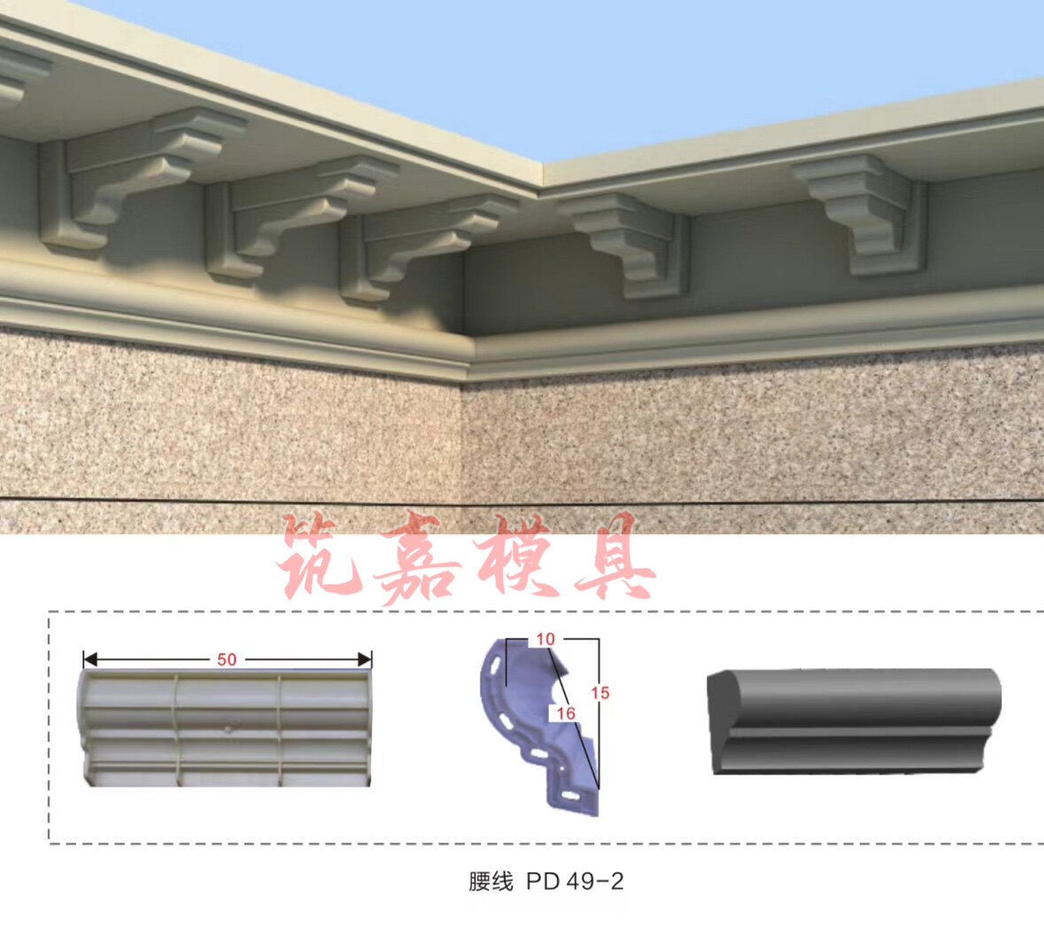 Линия талии балкона, линия цоколя колонны, цоколя колонны, декоративная линия головы трубы, линия, литая на месте, форма для строительства дома, виллы