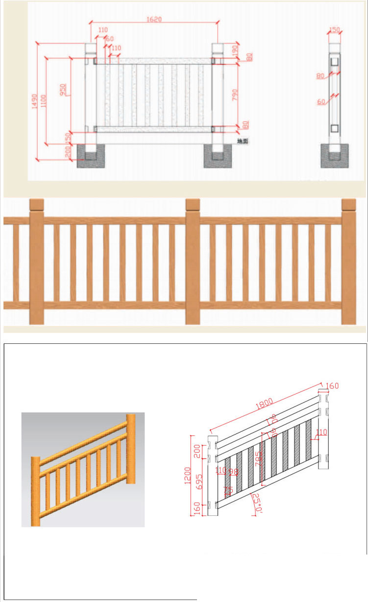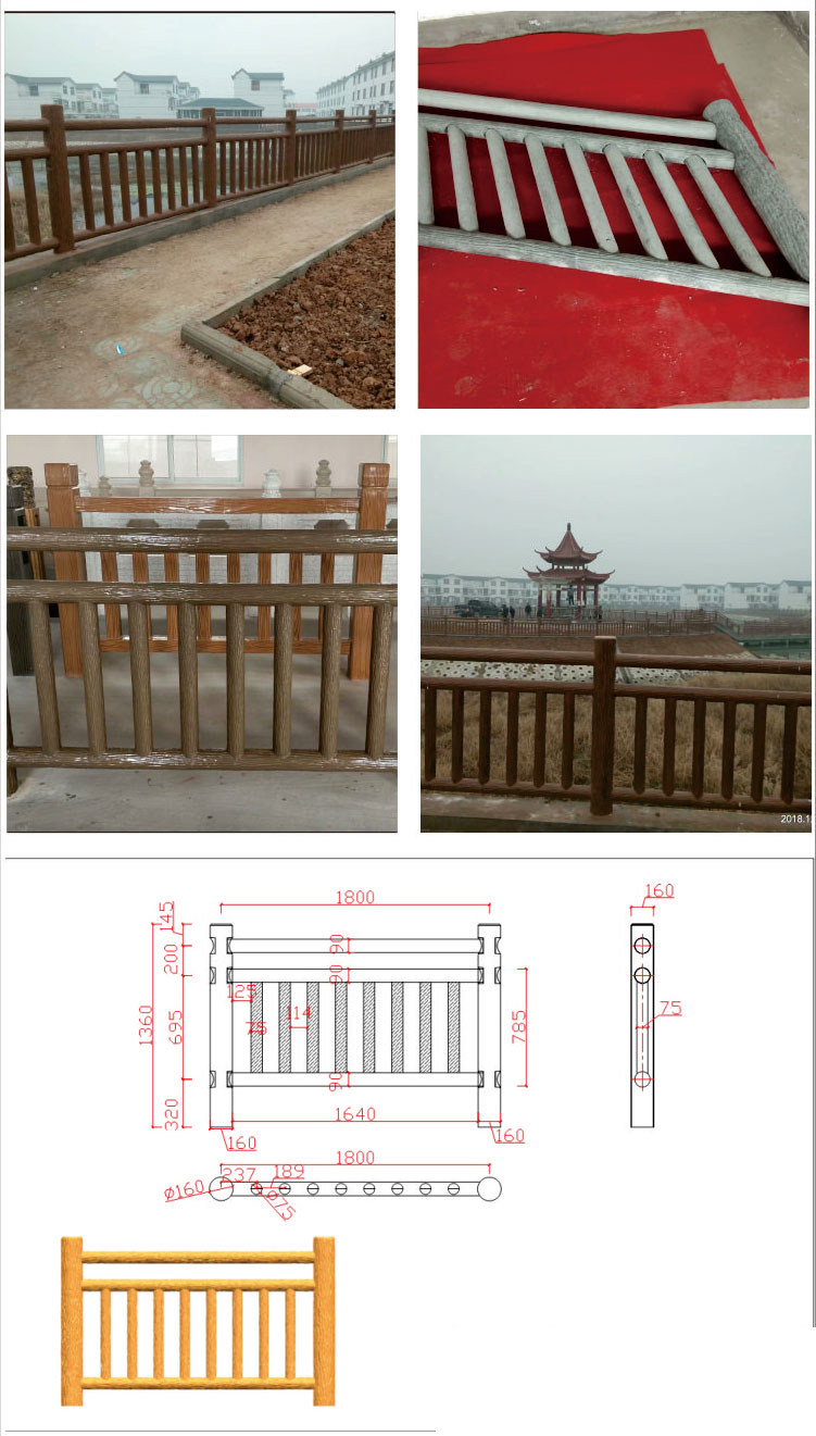 Цементный перила имитация плесени Деревянный бетон эскалатор пластиковый имитация бамбука