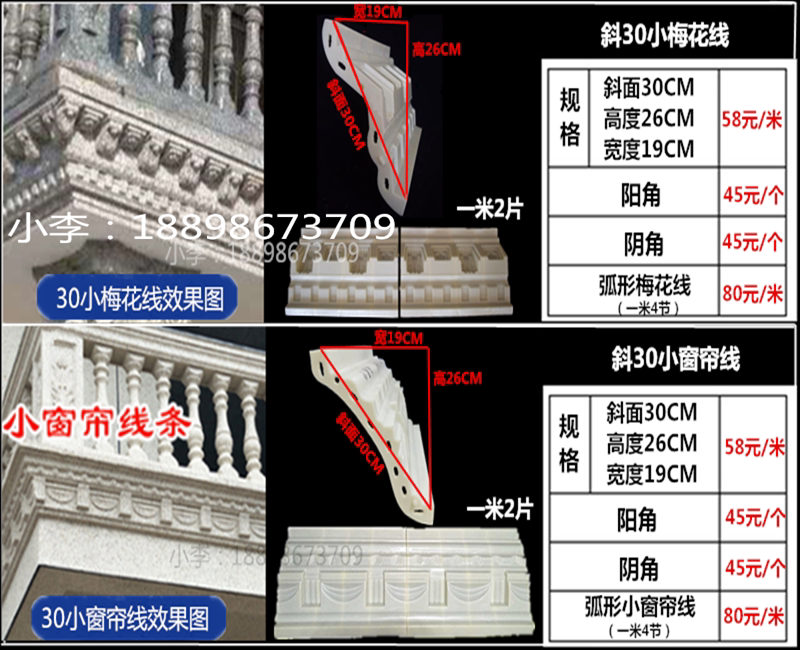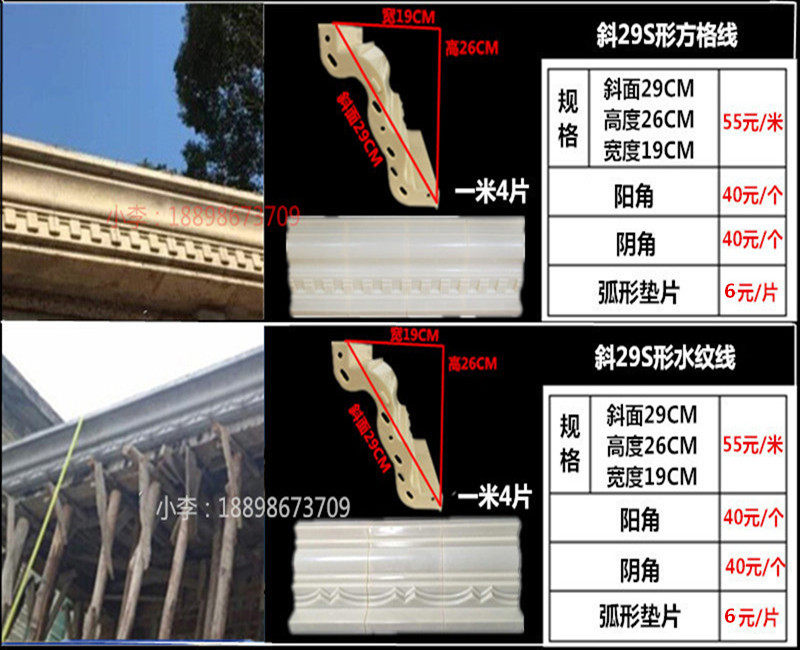 Строительная модель европейской виллы Внешняя стена декоративная линия карниза