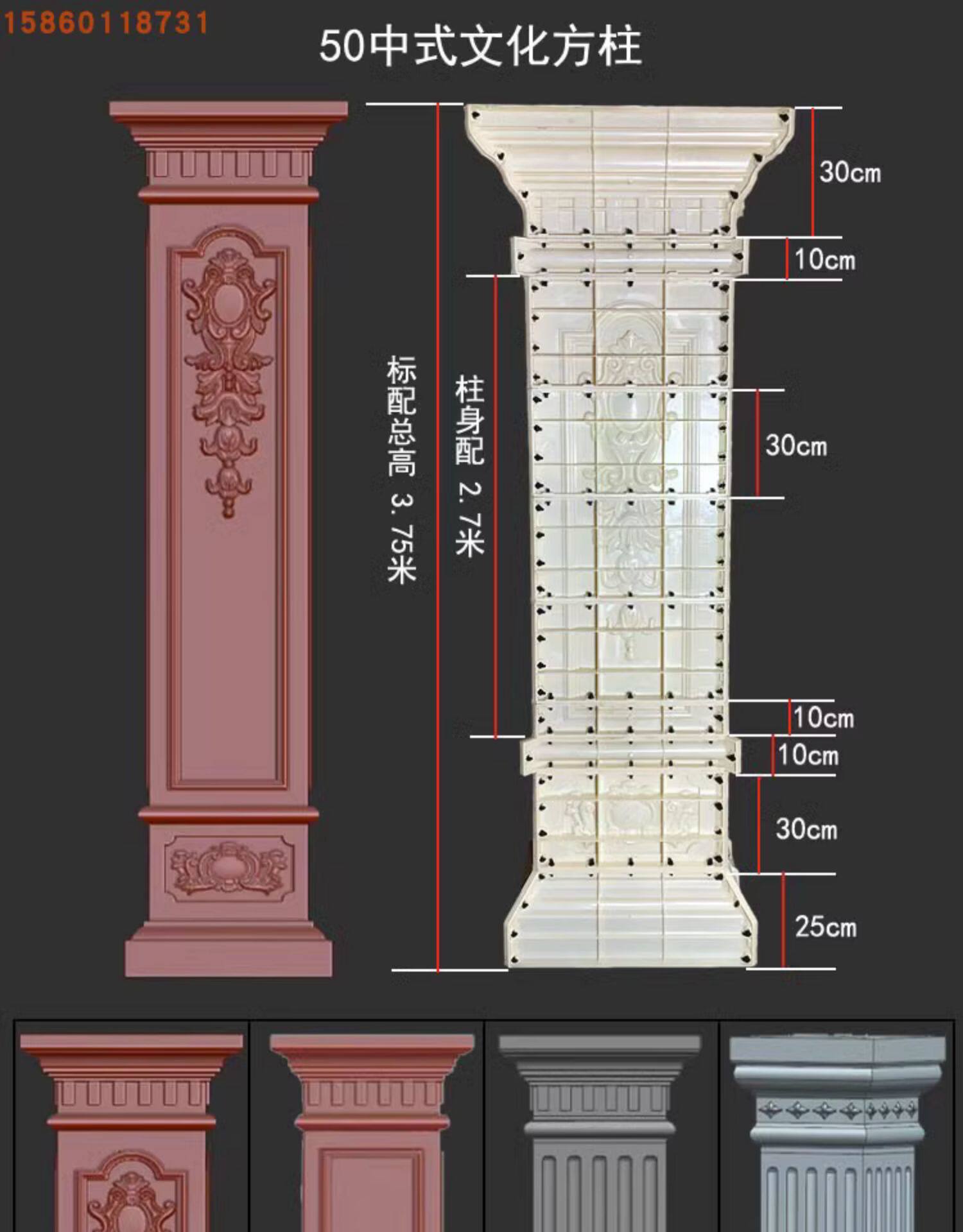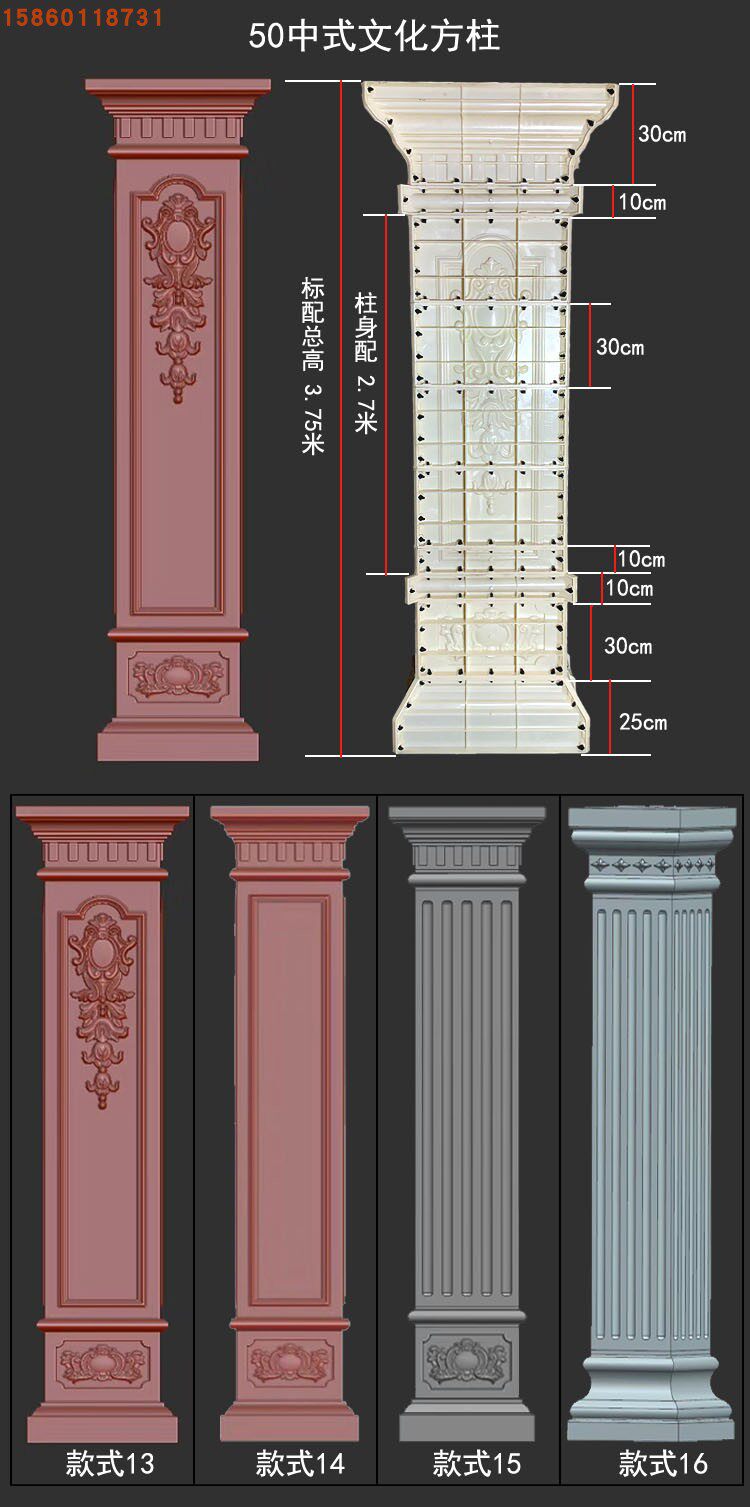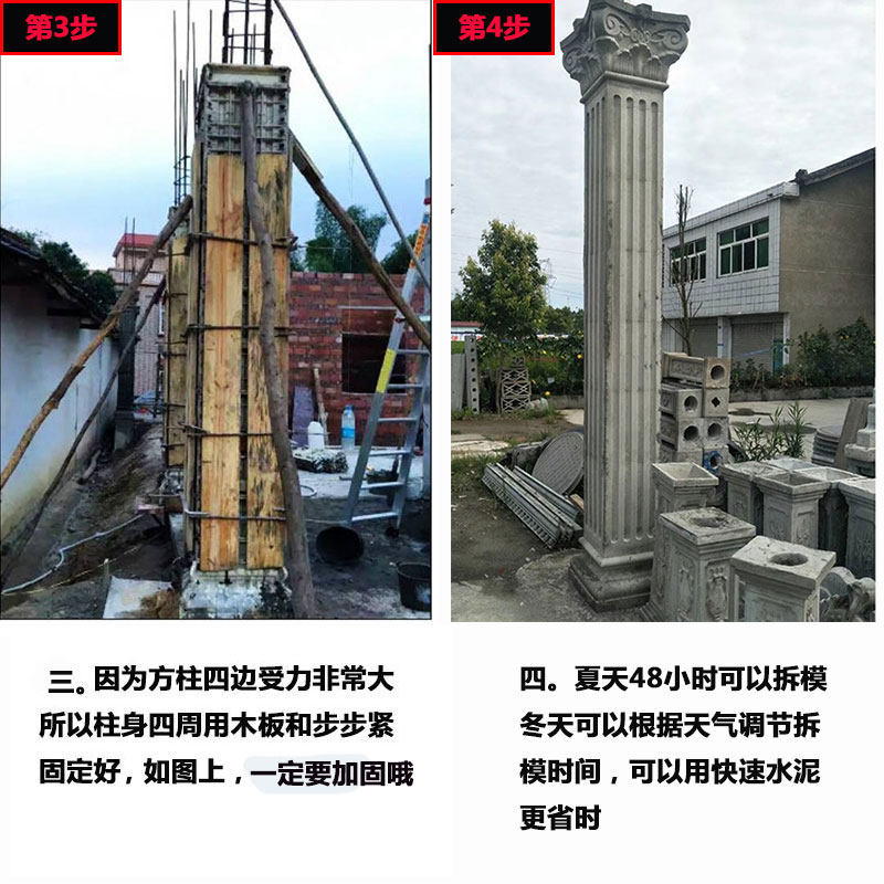 Римская колонна плесень европейская вилла -вилла квадратные колонны Внешние стены балкон балкон четыре квадратных столба цементные шаблоны здания