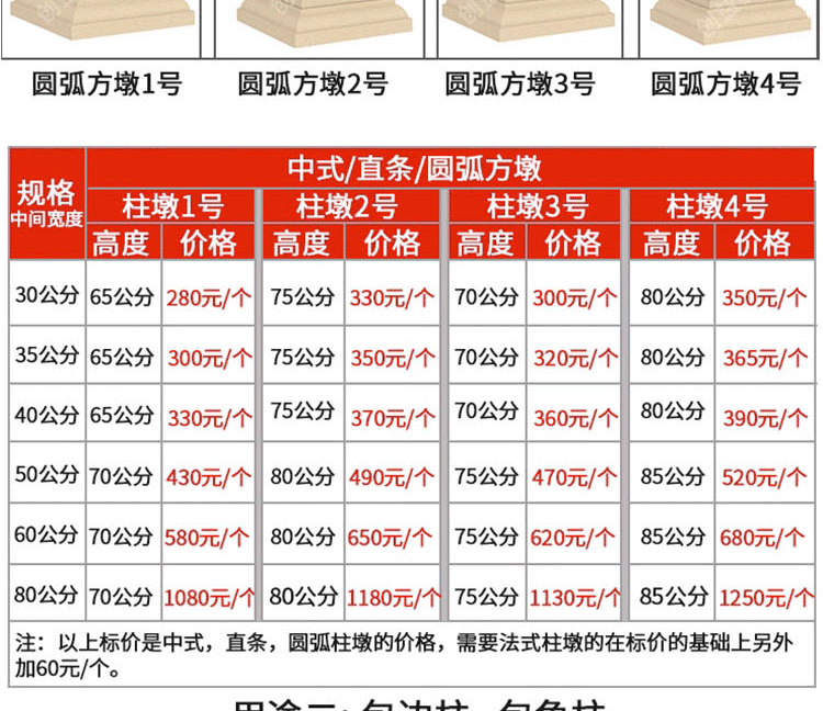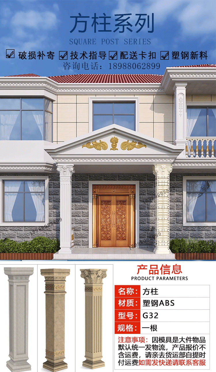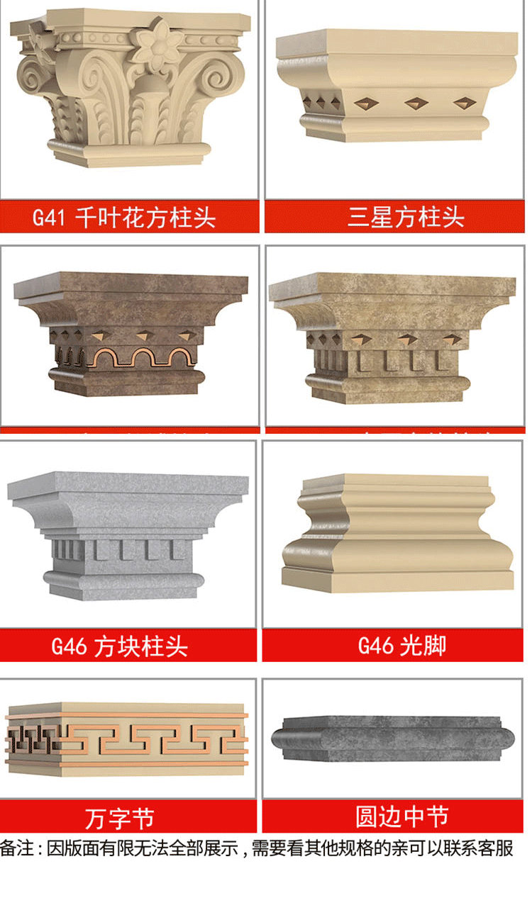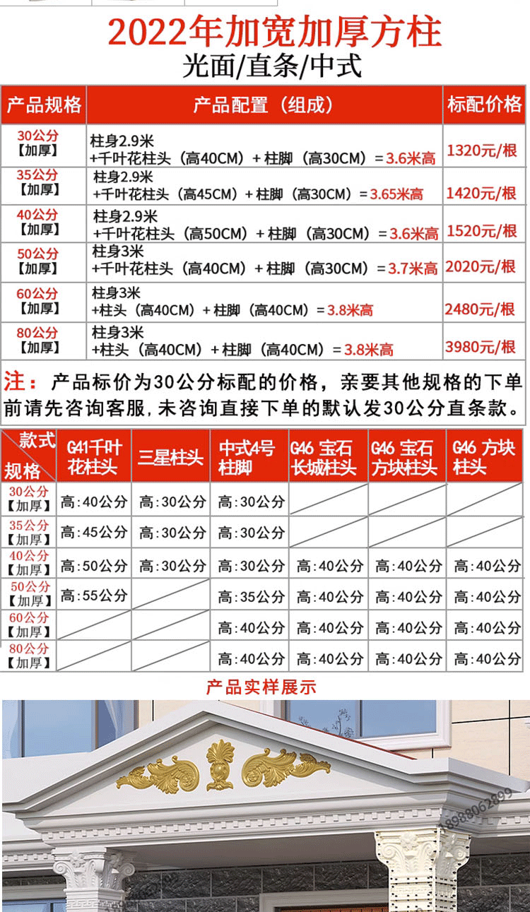 | Цвет: | Глянцевая колонна пирсов шириной 30 см и высотой 65 см, Прямые столбцы имеют ширину 30 см и высотой 65 см, Китайские колонны пирсов шириной 30 см и высотой 65 см, Пирсы из дуги шириной 30 см и высотой 65 см, Французские колонны Piers 30 см в ширину и 65 см в высоту, Ширина квадратной колонны глянцевой колонны высотой 30 см 3,6 метра, Ширина с прямой квадратной колонкой высотой 30 см 3,6 метра, Ширина китайской квадратной колонны высотой 30 см 3,6 метра, Ширина французской квадратной колонны высотой 30 см 3,6 метра, Для других стилей, пожалуйста, свяжитесь с обслуживанием клиентов |