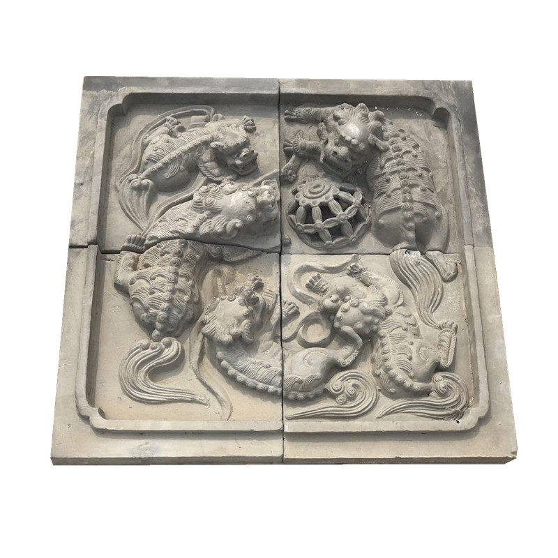 Шаньси антикварная кирпичная резьба китайская теневая стена декоративная живопись Пять львов, древнее здание древнее здание фона стена зеленое кирпич